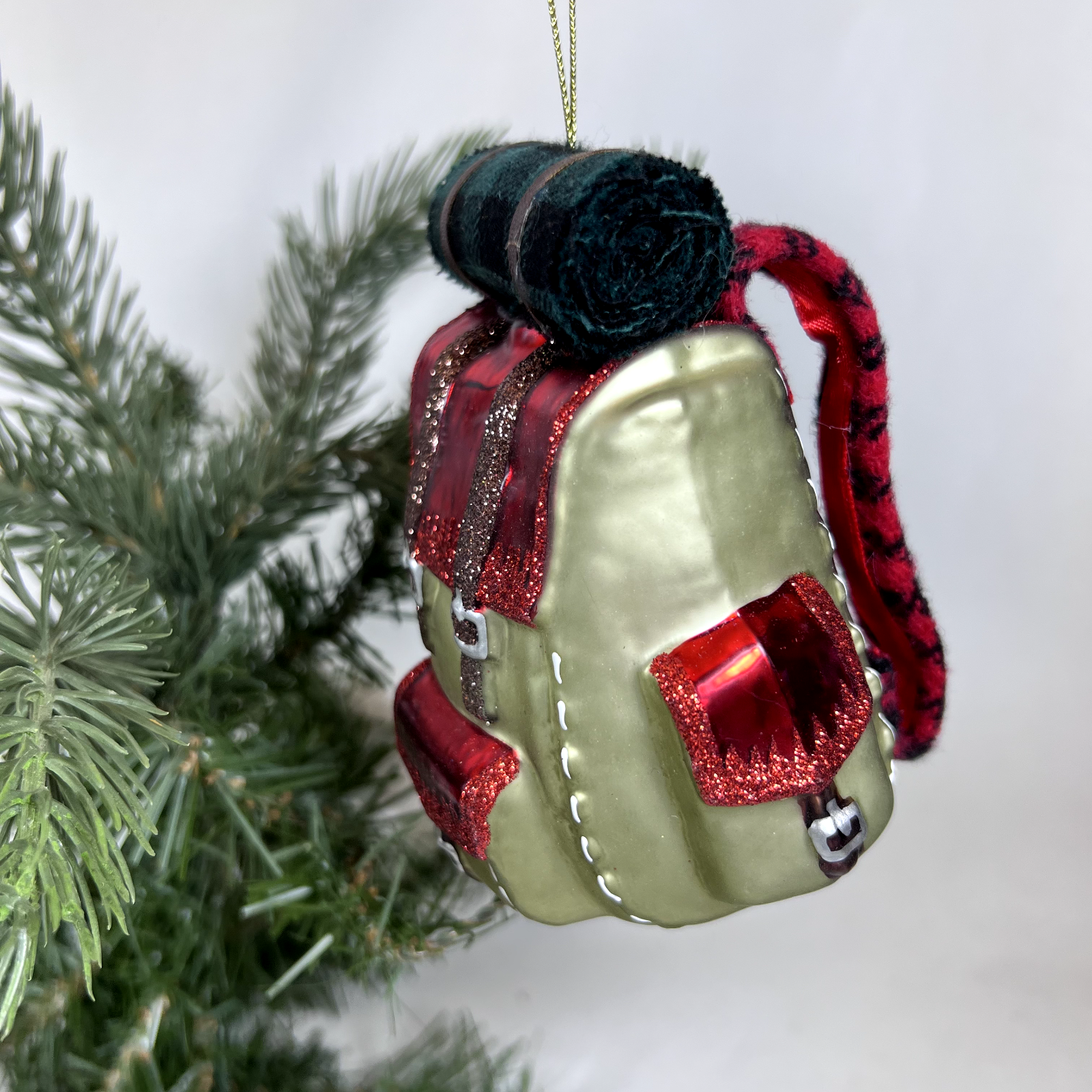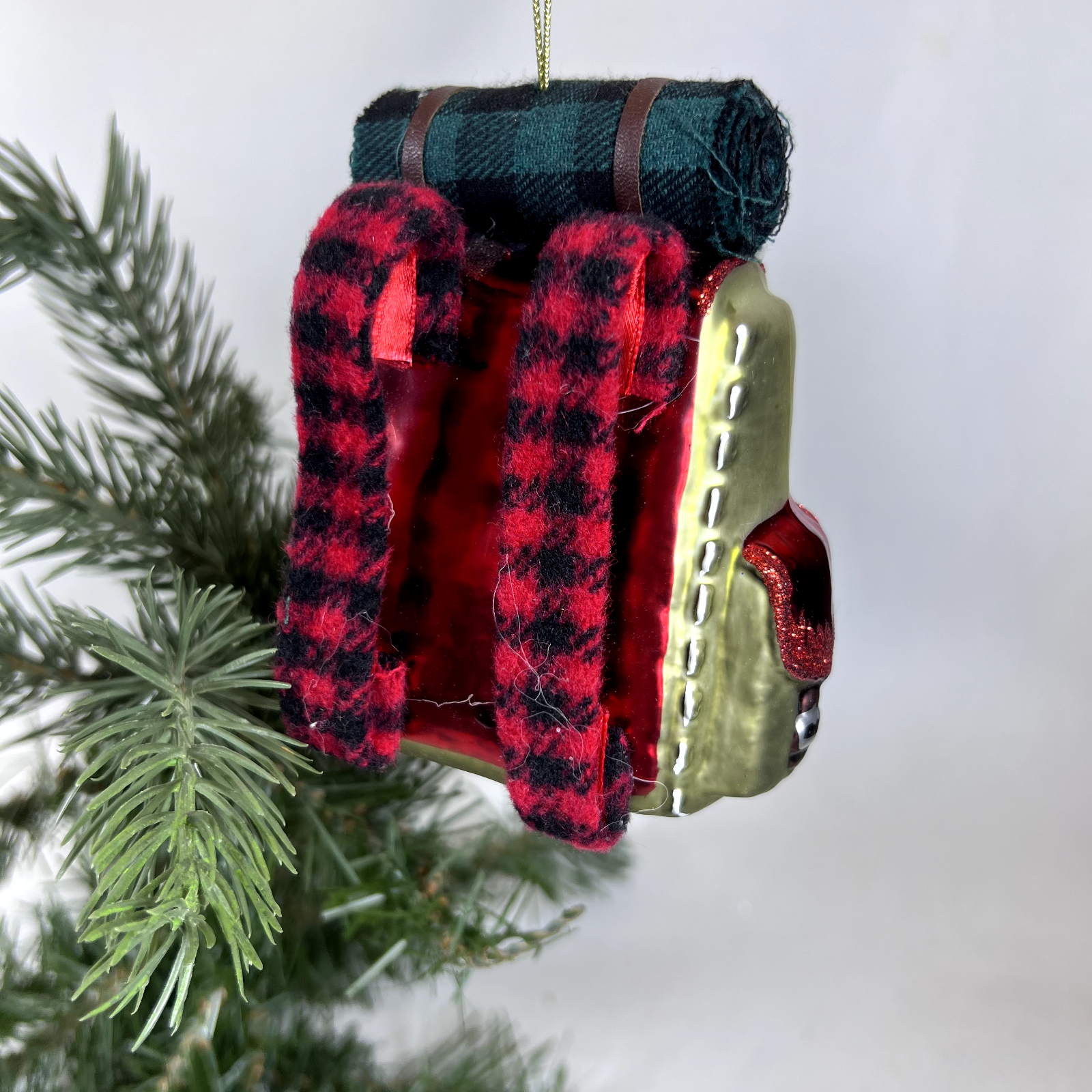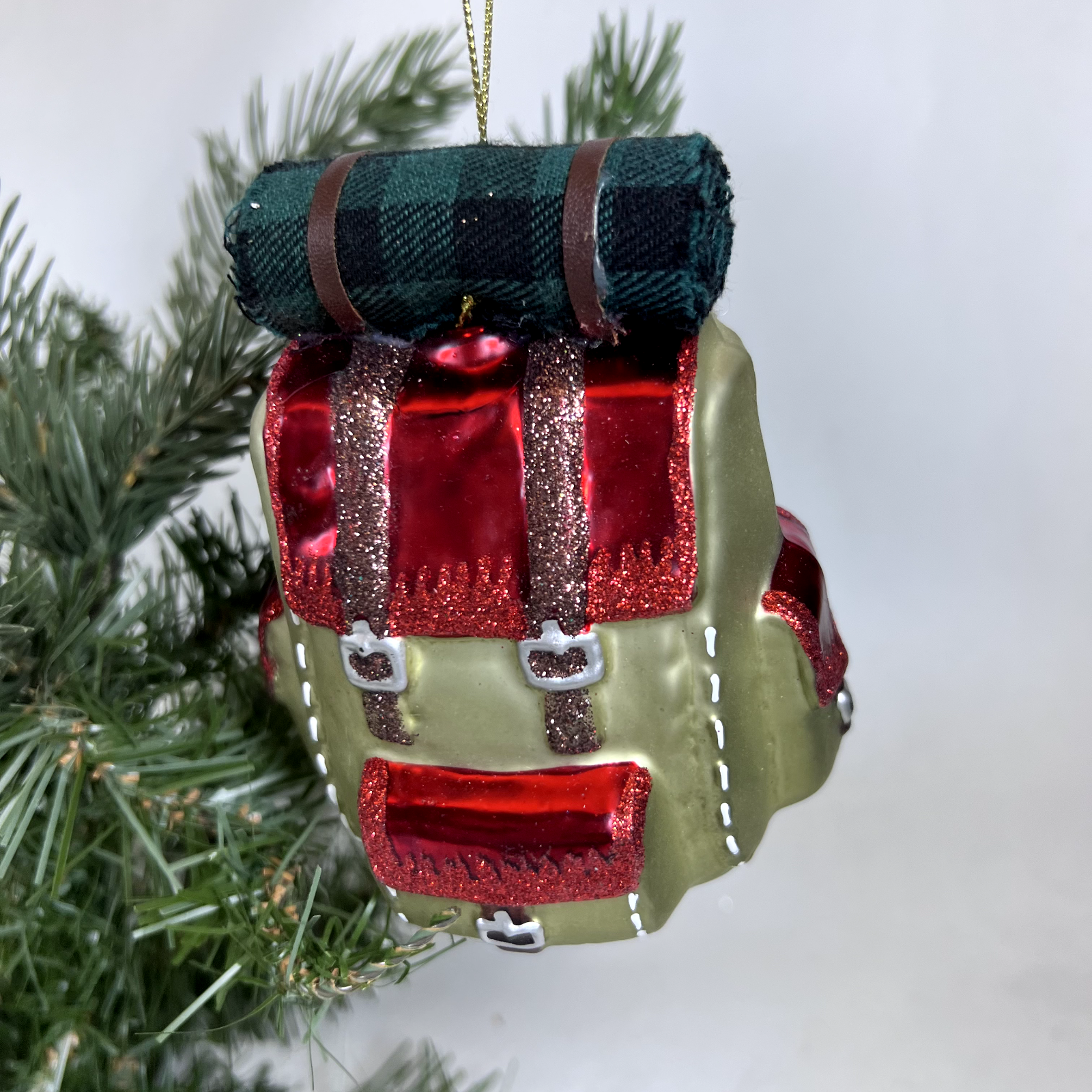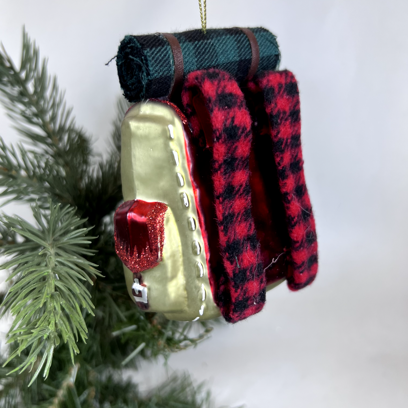 Hiking Backpack Blown Glass Christmas Ornament Backpacking 4" Red Plaid * Features: Red Plaid * Item Size: 4 inches * Character: Red Sleeping Bag with Red Plaid * Material: Glass * Brand: GANZ Midwest CBK * Package: None * Perfect for fans of Camping and Hiking * No tags