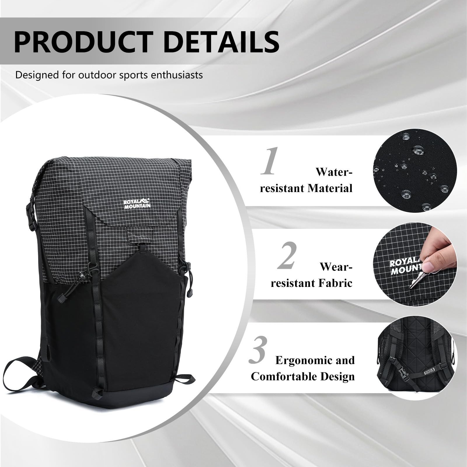 20L Lightweight Foldable Water Resistant Packable Travel Small Hiking Backpacks, Daypack Backpacks For Travel, Camping 20L Storage System: 20L Hiking backpack measures 16.93" H x 11.81" L x 5.12" W (43x30x13cm) and weighs just 1.05lb,Black. This small hiking backpack balances minimalist weight with max utility. Which can hold your travel and hiking essentials. Foldable Hiking Backpack: Our foldable & packable hiking backpack can be folded into a compact tote bag with its own inner pocket. You can easily put it in your suitcase or coat pocket, which is very convenient to carry and saves space. Unique Design: lightweight hiking backpack for men has expandable pocket on the top, It can accommodate all the necessities you need during your trip; There are two on one side of the side bag, making it very convenient to access daily necessities.The elastic band at the bottom is used for installing hiking sticks and the like. Water Resistant Hiking Backpack: The 20l small hiking backpack is made of UHMWPE checkered fabric and has features such as water-resistant and wear-resistant. Our adjustable chest strap (with an emergency whistle) and breathable shoulder strap can keep youcomfortable during long journeys Widely Used: This camping backpack for women perfect for traveling, hiking,camping, cycling and other outdoor activities. It meets size requirements for most airlines, enough room for 1 or 3days trips.