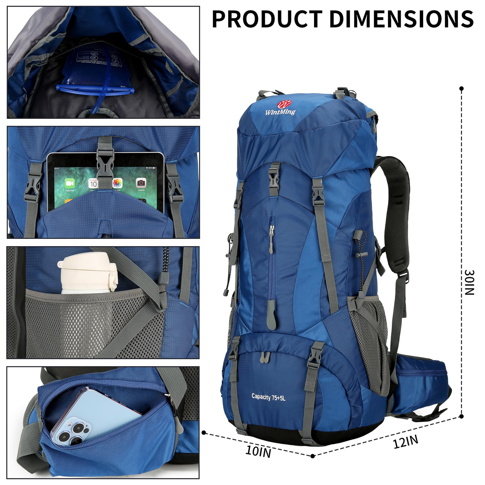 Waterproof & Stable: Camping backpack is made of high-density polyester material, which tear-resistant, water-resistant and anti-abrasion, this men hiking backpack equipped with a rain cove on the bottom pocket, no fear of heavy rain, keep everything dry. Support and Comfort: Hiking daypack designed the ventilated mesh shoulder straps, uses supportive back panel instead of the internal frame to maintain the three-dimensionality and support of the backpack while ergonomically designed provides body comfort. Large Capacity Backpack: Travel backpack with 75L storage space(30 * 12 * 10inch), easily hold all your camping and hiking essential stuffs, multi-compartments design are convenient enough to help you further organize things, and designed a separate shoe warehouse. Outdoor Backpack: This lightweight camping backpack only 3 pounds, for 3 or 4 days trips, adjustable waist belt and chest strap for balance, safety and fit, compression straps around the torso make the backpack more compact, a great backpack for men and women for outdoor traveling. Service Guarantee: A great outdoor backpack for hiking, camping, backpacking, trekking, traveling and climbing. If you have any quality problems with the backpack you received, please feel free to message us, we provide a one-year exchange.