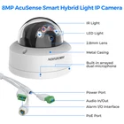 The Camera is Hikvision Acusense IP Camera The warranty is 3 years. If the item has any problem after receiving it. Please feel free to contact us. We will reply you within one business work day. ⭐Phone APP : Hik-Connect ⭐PC Client : iVMS-4200 ⭐Search Tool : SADP ⭐Default IP : 192.168.1.64 ⭐Camera lens : 2.8 mm Smart Motion Detection When detecting a moving object in the monitoring area, this camera starts recording and send message to your mobile phone or email at the same time, reminding you to take protective measures in time. Line crossing detection Line crossing detection function detects people, vehicle or other objects which cross a pre-defined virtual line, and some certain actions can be taken when the alarm is triggered. Intrusion detection Intrusion detection function detects people, vehicles or other objects which enter and loiter in a pre-defined virtual region, and some certain linked actions can be taken when the alarm is triggered. Dual-Mic Built-in arrayed dual-microphone for real-time high quality audio security Specifications Camera Image Sensor 1/2.8" Progressive Scan CMOS Max. Resolution 3840 × 2160 Min. Illumination Color: 0.005 Lux @ (F1.6, AGC ON),B/W: 0 Lux with IR Shutter Time 1/3 s to 1/100,000 s Day & Night IR cut filter Angle Adjustment Pan: 0° to 355°,tilt: 0° to 75°,rotate: 0° to 355° Lens Lens Type Fixed focal lens, 2.8 and 4 mm optional Focal Length & FOV 2.8 mm, horizontal FOV 108°, vertical FOV 59°, diagonal FOV 127° 4 mm, horizontal FOV 88°, vertical FOV 44°, diagonal FOV 105° Lens Mount M12 Iris Type Fixed Aperture F1.6 Depth Of Field 2.8 mm: 1.7 m to ∞ 4 mm: 2.6 m to ∞ DORI DORI 2.8 mm, D: 84 m, O: 33 m, R: 16 m, I: 8 m 4 mm, D: 117 m, O: 46 m, R: 23 m, I: 11 m Illuminator Supplement Light Type IR,White Light Supplement Light Range Up to 30 m Smart Supplement Light Yes IR Wavelength 850 nm Video Main Stream 50 Hz: 20 fps (3840 × 2160) 25 fps (3200 × 1800, 2688 × 1520, 1920 × 1080, 1280 × 720) 60 Hz: 20 fps (3840 × 2160) 30 fps (3200 × 1800, 2688 × 1520, 1920 × 1080, 1280 × 720) Sub-Stream 50 Hz: 25 fps (1280 × 720, 640 × 480, 640 × 360) 60 Hz: 30 fps (1280 × 720, 640 × 480, 640 × 360) Third Stream 50 Hz: 10 fps (1920 × 1080, 1280 × 720, 640 × 480, 640 × 360) 60 Hz: 10 fps (1920 × 1080, 1280 × 720, 640 × 480, 640 × 360) *Third stream is supported under certain settings. Video Compression Main stream: H.265/H.264/H.264+/H.265+, Sub-stream: H.265/H.264/MJPEG, Third stream: H.265/H.264, *Third stream is supported under certain settings. Video Bit Rate 32 Kbps to 16 Mbps H.264 Type Baseline Profile,Main Profile,High Profile H.265 Type Main Profile Scalable Video Coding (SVC) H.264 and H.265 encoding Bit Rate Control CBR,VBR Region Of Interest (ROI) 1 fixed region for main stream and sub-stream Target Cropping Yes Audio Audio Compression -2U: G.711/G.722.1/G.726/MP2L2/PCM/MP3/AAC-LC Audio Bit Rate -2U: 64 Kbps (G.711ulaw/G.711alaw)/16 Kbps (G.722.1)/16 Kbps (G.726)/32 to 160 Kbps (MP2L2)/8 to 320 Kbps (MP3)/16 to 64 Kbps (AAC-LC) Audio Sampling Rate -2U: 8 kHz/16 kHz/32 kHz/48 kHz Environment Noise Filtering -2U: Yes Network Protocols TCP/IP, ICMP, HTTP, HTTPS, FTP, DHCP, DNS, DDNS, RTP, RTSP, RTCP, NTP, UPnP, SMTP, IGMP, 802.1X, QoS, IPv4, IPv6, UDP, Bonjour, SSL/TLS, PPPoE, SNMP, WebSocket, WebSockets Simultaneous Live View Up to 6 channels API Open Network Video Interface (Profile S, Profile G),ISAPI,SDK,ISUP Security Password protection, complicated password, HTTPS encryption, IP address filter, Security Audit Log, basic and digest authentication for HTTP/HTTPS, TLS 1.1/1.2/1.3, WSSE and digest authentication for Open Network Video Interface User/Host Up to 32 users 3 user levels: administrator, operator, and user Client iVMS-4200,Hik-Connect,Hik-Central Network Storage NAS (NFS, SMB/CIFS),Auto Network Replenishment (ANR), Together with high-end Hikvision memory card, memory card encryption and health detection are supported. Web Browser Plug-in required live view: IE 11, Plug-in free live view: Chrome 80+, Firefox 80+, Edge 89+, Safari 13+, Local service: Chrome 80+, Firefox 80+, Edge 89+, Safari 13+ Image Image Parameters Switch Yes Day/Night Switch Day,Night,Auto,Schedule Wide Dynamic Range (WDR) 120 dB SNR ≥ 52 dB Image Enhancement BLC,HLC,3D DNR Privacy Mask 8 programmable polygon privacy masks Interface Ethernet Interface 1 RJ45 10 M/100 M self-adaptive Ethernet port Audio Built-in Microphone: -2U: Dual Array Microphone -S: 1 input (line in), two-core terminal block, max. input amplitude: 3.3 Vpp, input impedance: 4.7 KΩ, interface type: non-equilibrium 1 output (line out), two-core terminal block, max. output amplitude: 3.3 Vpp, output impedance: 100 Ω, interface type: non-equilibrium On-Board Storage Built-in memory card slot, support microSD/microSDHC/microSDXC card, up to 512 GB Alarm -S: 1 input, 1 output (max. 12 VDC, 30 mA) Reset Key Yes Event Basic Event Motion detection (support alarm triggering by specified target types (human and vehicle)),video tampering alarm,exception Smart Event Unattended baggage detection, object removal detection Linkage Upload to FTP/NAS/memory card,notify surveillance center,send email,trigger recording,trigger capture,-S: trigger alarm output Deep Learning Function Perimeter Protection Line crossing, intrusion, region entrance, region exiting Support alarm triggering by specified target types (human and vehicle) General Power 12 VDC ± 25%, 0.7 A, max. 8.4 W,Ø5.5 mm coaxial power plug,reverse polarity protection, PoE: IEEE 802.3af, Class 3, max. 10 W Material Base: aluminum alloy, cover: aluminum alloy Dimension Ø121.5 mm × 97.6 mm (Ø4.78" × 3.84") Package Dimension 150 mm × 150 mm × 141 mm (5.91" × 5.91" × 5.55") Weight Approx. 600 g (1.3 lb.) With Package Weight Approx. 840 g (1.9 lb.) Storage Conditions -30 °C to 60 °C (-22 °F to 140 °F). Humidity 95% or less (non-condensing) Startup And Operating Conditions -30 °C to 60 °C (-22 °F to 1