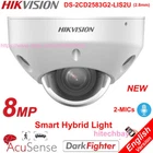Hikvision DS-2CD2583G2-LIS2U 8MP Smart-Hybrid-Light AcuSense Mini Dome Camera PoE Built-in MICs >>> Welcome to the bulk order of Hikvision & Dahua original English products with attractive price, please contact us now! <<< Note*: 1. Original Hikvision international English version and Firmware upgradeable. 2. 2.8mm Lens as default . If need 4mm lens, please write a message in your order or contact us. Features High quality imaging with 8 MP resolution Acusense: Focus on human and vehicle classification based on deep learning Smart Hybrid Light: Integrates IR and White lights, 3 supplemental lighting modes -2U: Built-in arrayed-dual microphone for real-time high quality audio security Clear imaging against strong back light due to 120 dB true WDR technology Efficient H.265+ compression technology Water and dust resistant (IP67) and vandal-resistant (IK08) Specifications Camera Image Sensor 1/2.8" Progressive Scan CMOS Max. Resolution 3840 × 2160 Min. Illumination Color: 0.005 Lux @ (F1.6, AGC ON),0 Lux with light Shutter Time 1/3 s to 1/100,000 s Day & Night IR cut filter Angle Adjustment Pan: -30° to 30°,tilt: 0° to 75°,rotate: 0° to 360° Lens Lens Type Fixed focal lens, 2.8 and 4 mm optional Focal Length & FOV 2.8 mm, horizontal FOV 108°, vertical FOV 59°, diagonal FOV 127° 4 mm, horizontal FOV 88°, vertical FOV 44°, diagonal FOV 105° Lens Mount M12 Iris Type Fixed Aperture F1.6 Depth of Field 2.8 mm: 1.7 m to ∞ 4 mm: 2.6 m to ∞ DORI DORI 2.8 mm, D: 84 m, O: 33 m, R: 16 m, I: 8 m 4 mm, D: 117 m, O: 46 m, R: 23 m, I: 11 m Illuminator Supplement Light Type IR,White Light Supplement Light Range Up to 30 m Smart Supplement Light Yes IR Wavelength 850 nm Video Main Stream 50 Hz: 20 fps (3840 × 2160) 25 fps (3200 × 1800, 2688 × 1520, 1920 × 1080, 1280 × 720) 60 Hz: 20 fps (3840 × 2160) 30 fps (3200 × 1800, 2688 × 1520, 1920 × 1080, 1280 × 720) Sub-Stream 50 Hz: 25 fps (1280 × 720, 640 × 480, 640 × 360) 60 Hz: 30 fps (1280 × 720, 640 × 480, 640 × 360) Third Stream 50 Hz: 10 fps (1920 × 1080, 1280 × 720, 640 × 480, 640 × 360) 60 Hz: 10 fps (1920 × 1080, 1280 × 720, 640 × 480, 640 × 360) *Third stream is supported under certain settings. Video Compression Main stream: H.265/H.264/H.264+/H.265+, Sub-stream: H.265/H.264/MJPEG, Third stream: H.265/H.264, *Third stream is supported under certain settings. Video Bit Rate 32 Kbps to 16 Mbps H.264 Type Baseline Profile,Main Profile,High Profile H.265 Type Main Profile Scalable Video Coding (SVC) H.264 and H.265 encoding Bit Rate Control CBR,VBR Region of Interest (ROI) 1 fixed region for main stream and sub-stream Target Cropping Yes Audio Audio Compression -2U: G.711/G.722.1/G.726/MP2L2/PCM/MP3/AAC-LC Audio Bit Rate -2U: 64 Kbps (G.711ulaw/G.711alaw)/16 Kbps (G.722.1)/16 Kbps (G.726)/32 to 192 Kbps (MP2L2)/8 to 320 Kbps (MP3)/16 to 64 Kbps (AAC-LC) Audio Sampling Rate -2U: 8 kHz/16 kHz/32 kHz/48 kHz Environment Noise Filtering -2U: Yes Network Protocols TCP/IP, ICMP, HTTP, HTTPS, FTP, DHCP, DNS, DDNS, RTP, RTSP, RTCP, NTP, UPnP, SMTP, IGMP, 802.1X, QoS, IPv4, IPv6, UDP, Bonjour, SSL/TLS, PPPoE, SNMP, WebSocket, WebSockets Simultaneous Live View Up to 6 channels API ONVIF (Profile S, Profile G),ISAPI,SDK,ISUP Security Password protection, complicated password, HTTPS encryption, IP address filter, Security Audit Log, basic and digest authentication for HTTP/HTTPS, TLS 1.1/1.2/1.3, WSSE and digest authentication for Open Network Video Interface User/Host Up to 32 users 3 user levels: administrator, operator, and user Client iVMS-4200,Hik-Connect,Hik-Central Network Storage NAS (NFS, SMB/CIFS),Auto Network Replenishment (ANR), Together with high-end Hikvision memory card, memory card encryption and health detection are supported. Web Browser Plug-in required live view: IE 11, Plug-in free live view: Chrome 80+, Firefox 80+, Edge 89+, Safari 13+, Local service: Chrome 80+, Firefox 80+, Edge 89+, Safari 13+ Image Image Parameters Switch Yes Day/Night Switch Day,Night,Auto,Schedule Wide Dynamic Range (WDR) 120 dB SNR ≥ 52 dB Image Enhancement BLC,HLC,3D DNR Privacy Mask 8 programmable polygon privacy masks Interface Ethernet Interface 1 RJ45 10 M/100 M self-adaptive Ethernet port Audio Built-in Microphone: -2U: Arrayed dual-microphone -S: 1 input (line in), two-core terminal block, max. input amplitude: 3.3 Vpp, input impedance: 4.7 KΩ, interface type: non-equilibrium 1 output (line out), two-core terminal block, max. output amplitude: 3.3 Vpp, output impedance: 100 Ω, interface type: non-equilibrium On-Board Storage Built-in memory card slot, support microSD/microSDHC/microSDXC card, up to 512 GB Alarm -S: 1 input, 1 output (max. 12 VDC, 30 mA) Reset Key Yes Event Basic Event Motion detection (support alarm triggering by specified target types (human and vehicle)),video tampering alarm,exception Linkage Upload to FTP/NAS/memory card,notify surveillance center,send email,trigger recording,trigger capture,-S: trigger alarm output Deep Learning Function Perimeter Protection Line crossing, intrusion Support alarm triggering by specified target types (human and vehicle) General Power 12 VDC ± 25%, 0.54 A, max. 6.5 W,Ø5.5 mm coaxial power plug,reverse polarity protection, PoE: IEEE 802.3af, Class 3, max. 8W Material Base: aluminum, cover: plastic Dimension Ø113.6 mm × 74.6 mm (Ø4.47" × 2.94") Package Dimension 150 mm × 150 mm × 141 mm (5.91" × 5.91" × 5.55") Weight Approx. 500 g (1.1 lb.) With Package Weight Approx. 660 g (1.5 lb.) Storage Conditions -30 °C to 60 °C (-22 °F to 140 °F). Humidity 95% or less (non-condensing) Startup and Operating Conditions -30 °C to 60 °C (-22 °F to 140 °F). Humidity 95% or less (non-condensing) Language 33 languages: English, Russian, Estonian, Bulgarian, Hungarian, Greek, German, Italian, Czech, Slovak, French, Polish, Dutch, Portuguese, Spanish, Romanian, Danish, Swedish, Norwegian, Finnish, Croatian, Slovenian, Serbian, Turkish, Korean, Traditional Chinese, Thai, V