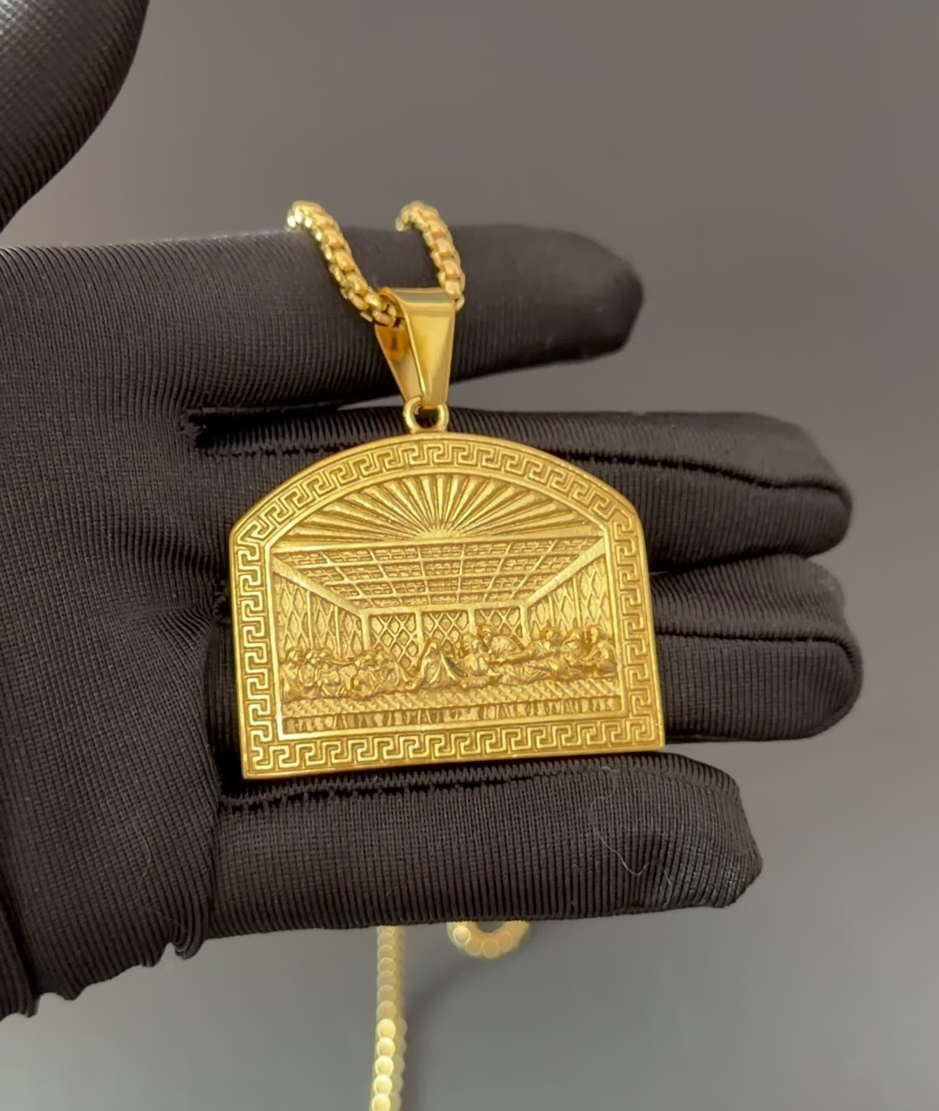 Hip Hop Last Supper Cross Pendant Necklace Stainless Steel Jewelry Silver Color