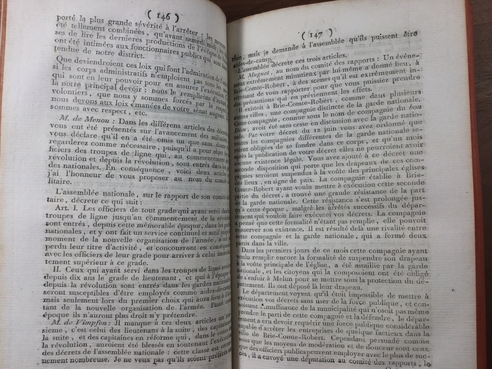 Rarious volume of the Journal of the Estates General published in August 1791 by Étienne Le Hodey de Sault Chevreuil in Paris at the Hodey. Exceptional work where all the motions, deliberations, discourse and operations of the National Assembly are located. This volume particularly contains articles on Brie Comte Robert, Senegal, Chinon, Dol de Bretagne ... There are also all political events in January 1791. Extraordinary work, a precious historical source with many fascinating discourse on the first steps of the French Revolution. Superb work in 8 bound full vintage calf, back with nerves decorated with red and green pieces of tomaison, full of 500 pages. Good condition for a book that is over 240, beautiful binding see photos. • We only sell authentic documents • We accept payment by check • In the event of grouped purchases we reduce postal costs • We have many historical documents on the French Revolution, the Empire and the Old Regime to discover on our Ebay store. Do not hesitate to subscribe to receive new announcements in priority. Rarious volume of the Journal of the Estates General published in August 1791 by Étienne Le Hodey de Sault Chevreuil in Paris at the Hodey. Exceptional work where all the motions, deliberations, discourse and operations of the National Assembly are located. This volume particularly contains articles on Brie Comte Robert, Senegal, Chinon, Dol de Bretagne ... There are also all political events in January 1791. Superb work in 8 bound full vintage calf, back with nerves decorated with red and green pieces of tomaison, full of 500 pages. Good condition for a book that is over 240, beautiful binding see photos. • We have many historical documents on the French Revolution, the Empire and the Old Regime to discover on our Ebay store. Do not hesitate to subscribe to receive new announcements in pr