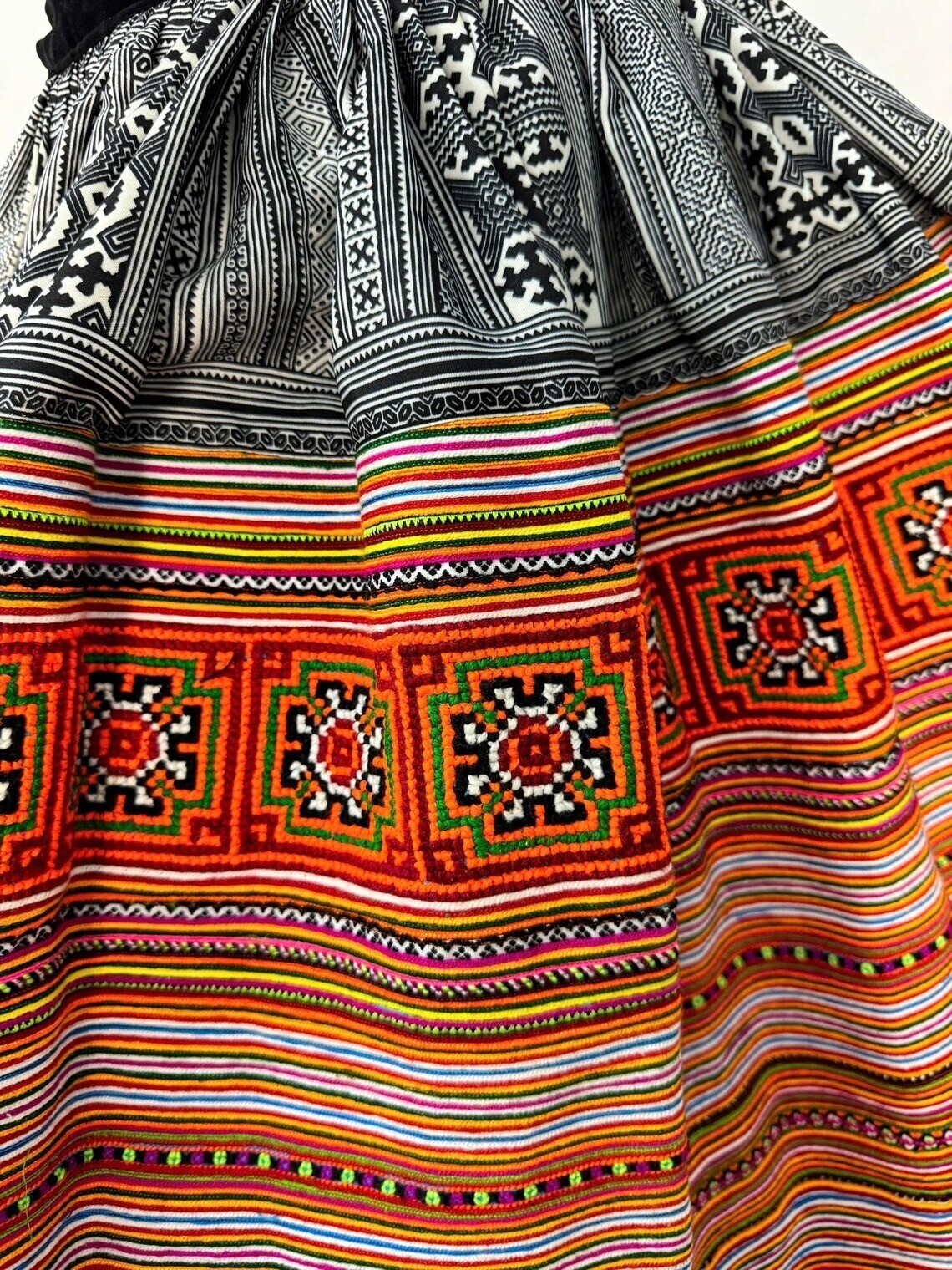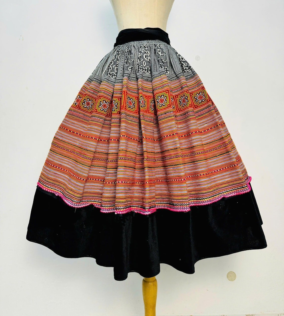 Vintage Hmong Tribal Skirt It remains in remarkably good condition, showcasing the durability and quality of the craftsmanship. The Hmong people, residing in the northernmost mountainous provinces and parts of northern central Vietnam, are renowned for their rich textile traditions, including appliqué, embroidery and metalwork. Embrace the cultural heritage and artistry of the Hmong people with this vintage tribal Hmong skirt. Its age, condition, and unique features make it a truly special and collectible piece that celebrates the rich textile traditions of the Hmong community. The length of this skirt is ~ 84cm (33 inches) Waistband ~ 96cm (38 inches) To maintain its longevity, we recommend hand washing this skirt in cool water. Please feel free to contact us if you have any questions. Hope you’d enjoy shopping with us!