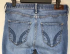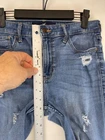 The product is a pair of Hollister jeans in a juniors size 7, with a distressed and destroyed look in blue. These skinny jeans feature a mid-rise waist and a 5-pocket design, made from a blend of polyester, spandex, viscose, and cotton. The jeans also have a slim fit and are machine washable, making them easy to care for. Perfect for all seasons, these stylish jeans are accented with button and logo details, offering a trendy and versatile addition to any wardrobe. Fair preowned condition with normal preowned wear. These jeans are riddled with holes and tears as pictured and have a raw hem. Please see all photos; specifically for measurements. For clothing specifically, see photos for all measurements and/or any issues if applicable. Pay close attention to the measurements as the size of the garment may quite possibly be different than the actual measurement(s) due to washing, shrinkage, or stretching as these are used clothes. The size in the title is the size on the tag of the garment. See photos for measurements of actual measurements as they may differ. ALWAYS CHECK THE MEASUREMENTS IN THE PHOTOS. This will remove any questions on measurements as well as always cover the possibility of human error in the listing(s) in the case of a typo or oversight. All clothing and shoes have been washed/cleaned, and are cleaned and stored in a smoke free environment. However, please keep in mind that these are preowned items and there is always a possibility of there being preowned dirt, dust, or stray hairs present. I do my best to clean these items with hair collecting products in the dryer after being washed, and by hand with shoes. If shoe trees appear in the photos, they are for photography purposes only to illustrate how the shoes look filled out, and are not included. I am available for questions. I accept or negotiate reasonable offers. Have an amazing day. Thank you.
