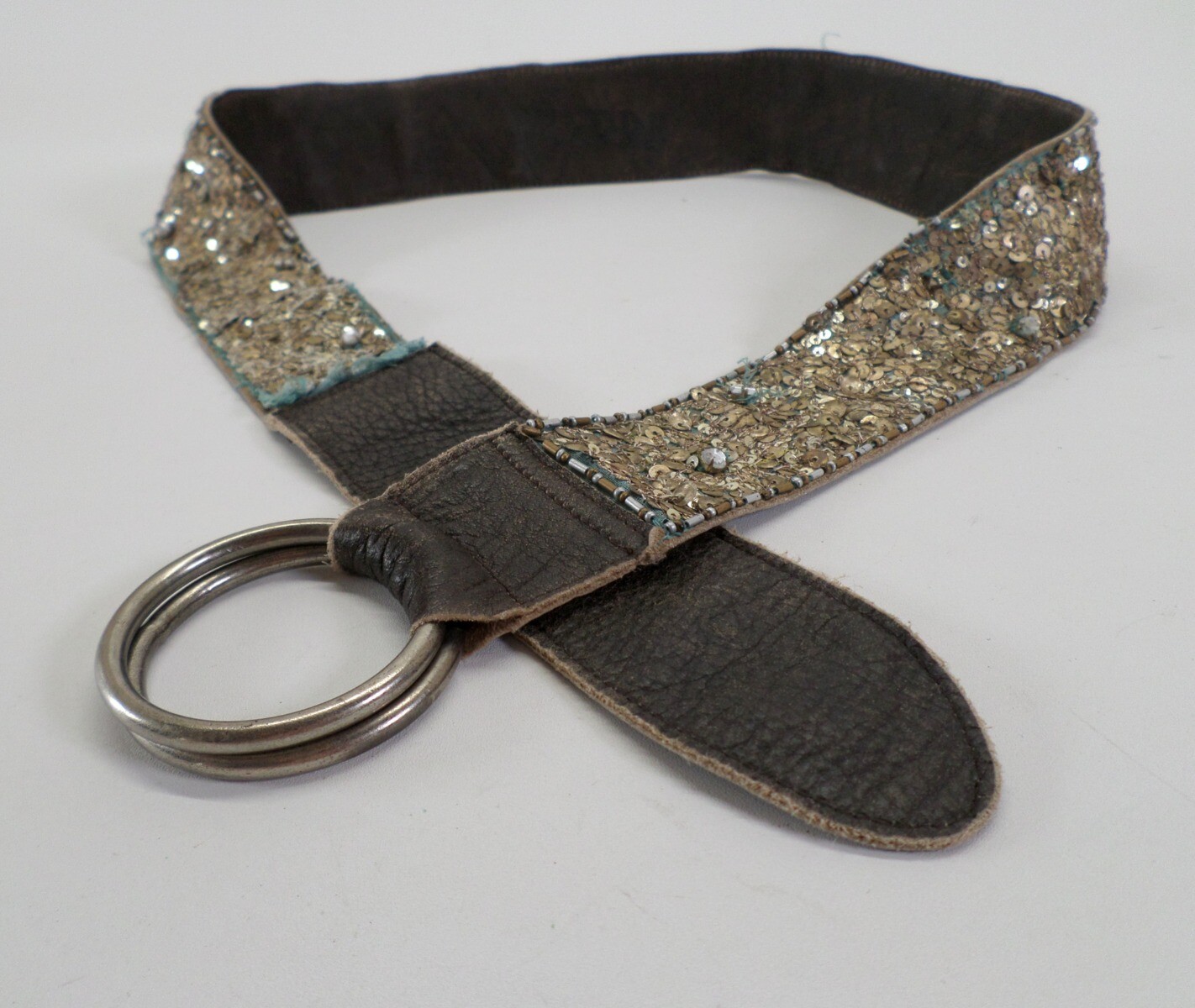 Hollister leather sequin belt. Material: genuine leather with thread inlay Color: blue green thread inlay with silver sequins and brown trim Size: medium/large 38 Width: 2" Waist circumference: 36" - 40" Strap length: 42.5" Total length: 44.5 Please note- all measurements are approximate. inkfrog terapeak