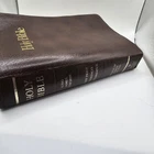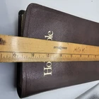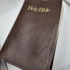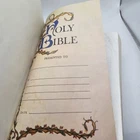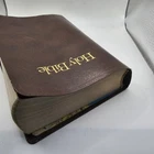 The "Holy Bible KJV GIANT PRINT" is a vintage edition of the Bible published by Thomas Nelson in the King James Version. It features large print text with words of Christ in red, a concordance reference, and a faux leather bound cover with gold gilt lettering. This Bible is intended for spiritual and religious purposes, specifically within the context of Christianity. One of the front pages is not connect to book. See photos sold as is