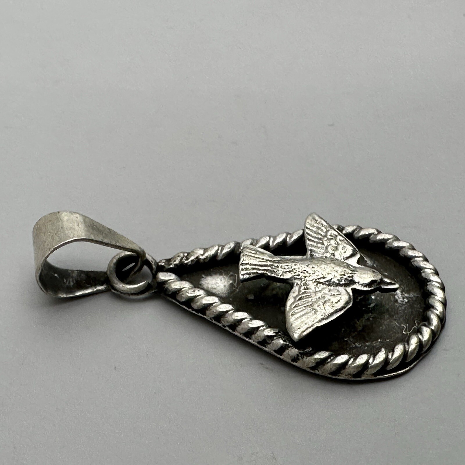 Descending Dove on Teardrop Pendant Holy Spirit Bird Taxco Mexico TA-95 Sterling Silver