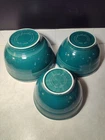 The dimensions of the mixing bowls are in the photos also any flaws so please examine the photos carefully before purchasing. This product is a 3-piece baking bowl set from the Homer Laughlin Fiesta Evergreen collection. The bowls are made of ceramic and have a vintage style. The set includes bowls of different sizes, and the pattern is Fiesta Evergreen. The bowls are handmade and were produced in the 2000s in the United States. The set is perfect for baking and has a unique theme.