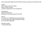 Crank Pulley Bolt D16Z6 D16 D15 D16Y8 D Series for Honda Civic 04133-P01-305 Feature: High quantity product for factory Easy to install, direct fits A perfect replacement for your original part Specifications: Condition: Brand New Manufacturer Part Number:04133-P01-305 Fitment: For Honda Civic 1988-2000 (Excludes Si Model) For Honda Del Sol Si/S (Excludes DOHC Model) For Honda CRX 1988-1991 Package included: 1x Crank Pulley Bolt -About US Founded in 2012, VIPJQ have professional development and sales, and are involved in various products, providing customers with various high-quality products. Since its establishment, VIPJQ has always adhered to the service concept of "customer first" and the management concept of "pursuit of quality", and is committed to providing customers with high-quality original designs. We commit to provide you the best innovative, quality products & professional services with competitive prices. We value every customer, and we look forward to providing solutions for your business needs to help your business achieve its goals, please contact us immediately! We are all about you! We are a Japanese seller,but with large warehouse in USA. We are profesional on Auto Parts,Car Parts,Motorcycle Parts,3C,other hot sale items and so on. We aim to provide to customers high quality product and best service. -About Shipment&Returns The item usually will be dispatched within 3 days after you ordered.All are free shipping. And it usually takes 3-10 working days to delivery depends on buyers' address or other majeure on the way. If you are not satisfied with the items and want to return the item,we hope you could message us first,we will give you the return details, we think we could give you the best service to save your time and money.Thank you. -About Feedback&Customer Service If you are enjoy your shopping here,not only enjoy the items but also the service,we are appreciate you could give us a 5-star feedback. If you are not satisfied with the item,before you give us the negative feedback,we hope we could give you the best solution through our commutication. We think we could do it if you give us the chance.Thank you.