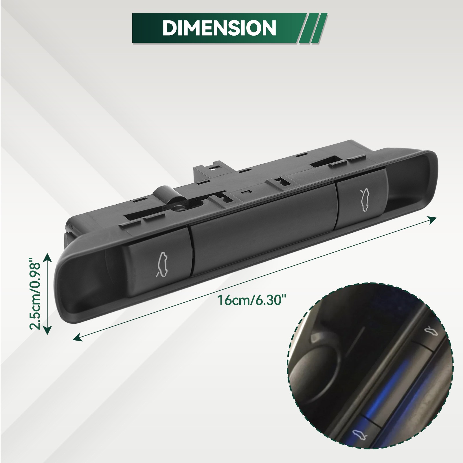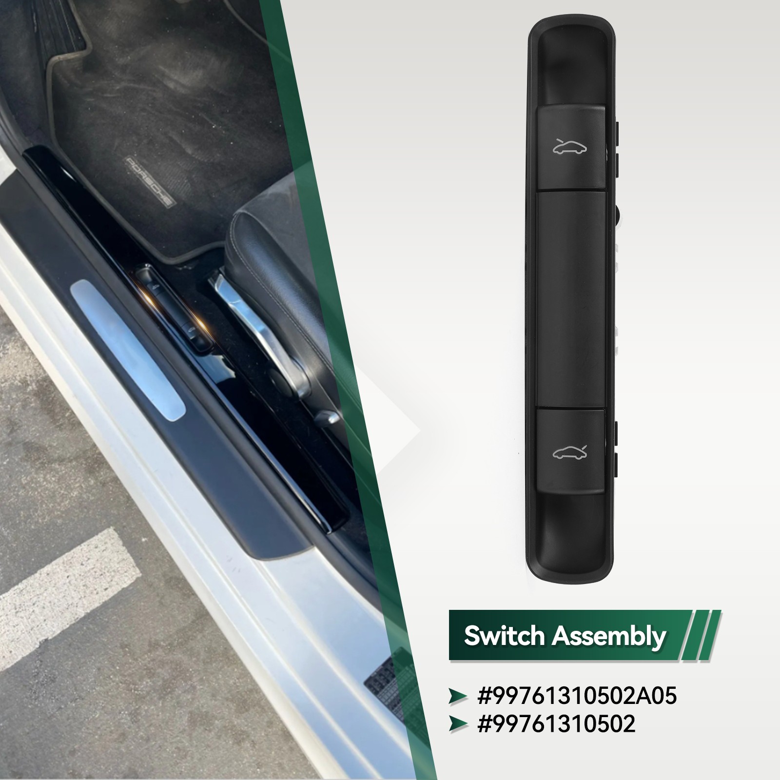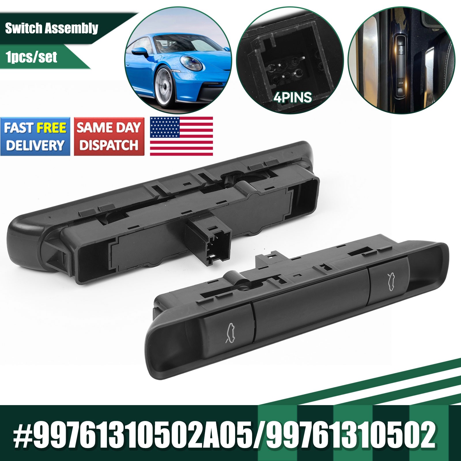 Description: 100% brand new and high quality. OEM Part Number : 99761310502, 99761310502A05 Material:High quality ABS Plastic To control:Boot Release Control quality according to standards Feature: Flexible buttons,easy to use. Easy to install,without modification Durable material,replace your old one perfectly Fitment: For Porsche 911 987 Boxster - ALL models built 2005-2012 For Porsche 911 987 Cayman - ALL models built 2006-2012 For Porsche 911 997 Carrera - ALL models built 2005-2012 (incl all Coupe & Cabrio & Turbo, GT2 & GT3). Note: This is not suitable For Targa models! Package Includes: 1X Bonnet Boot Release Switch