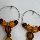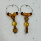 Hoop Earrings Beaded Yellow Brown Glass Thin Dainty Dangle Drop Boho Used, see photos for condition. May not include earring backs, includes what is shown in photos.