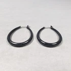 Hoop Earrings Black Enamel Gothic Steampunk Ethnic Modernist Bohemian 1.25"