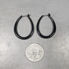 Up for sale is a set of hoop earrings. They are black in color . They are in good pre owned condition! Please view all posted pictures as they are part of the description. If you have any questions please ask. Please check out my store for more great deals that are listed every day!!