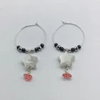 Hoop Earrings Boho White Star Carved Cat’s Eye Hematite Bead Silver Tone Dangle