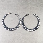 Up for sale is a set of hoop earrings. They are chrome in color . They are in good pre owned condition! Please view all posted pictures as they are part of the description. If you have any questions please ask. Please check out my store for more great deals that are listed every day!!
