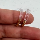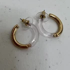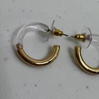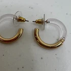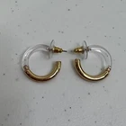 Hoop Earrings Gold Tone Clear 1 Inch Plastic Colorblock Pierced Round Used, see photos for condition. May not include earring backs, includes what is shown in photos.