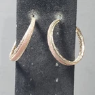 Up for sale is a set of hoop earrings. They are gold tone and pink in color . They are in good pre owned condition! Please view all posted pictures as they are part of the description. If you have any questions please ask. Please check out my store for more great deals that are listed every day!!