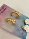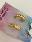 Gorgeous Vintage Quality hooped earrings signed Mode These hoop earrings have timeless classic elegance and were made and signed Mode in approx 1990's. The are made from gold tone metal are quite chunky and are decorated with 11 sparkling diamante stones on each earring. They are suitable for pierced ears with a quality butterfly back and the diameter across is approx 21mm. Suitable for any occasion these pretty vintage earrings are Post Free to the UK. Stock is very limited These will be sent by Royal Mail standard which does not enable me to provide a tracking number. Should you want me to use tracked post please contact me as there will be a further charge. Please note that I always obtain a proof of posting from Royal Mail for both standard and tracked post. Vintage stock can reasonably be expected to show some signs of age due to being stored for many years. All vintage stock is new and has been made available from closed down factories and wholesalers. Usually vintage stock is in perfect condition. Please look at the photos and bear in mind that occasionally there may be some signs of ageing however I will point out any obvious defects. Should you require any extra information to enable you to achieve old fashioned glamour in your craft work please dont hesitate to email me.