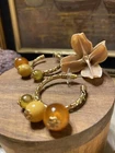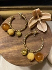 1980s Retro Loop Earrings, gold tone, glass beads 1.5"D