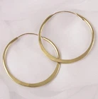 Hand hammered brass hoops with sterling silver ear wires. 2.25 inches in diameter. These brass hoop earrings are a well thought out and time tested design. Having an "endless hoop" look they do not have a hinge but rather a very strong solder at the connecting point. This solder will last forever if not overworked. Move the wire only the amount needed to place on the ear. These brass earrings are hand made by a silver smith here in the USA. 3 more brass hoop sizes available...... 1.25 inch, 2 inch and 1.5 inch diameter. Also copper hoops. Please check out store for more amazing jewelry! Brass cleans easily with concentrated lemon juice. Also brass cleaner