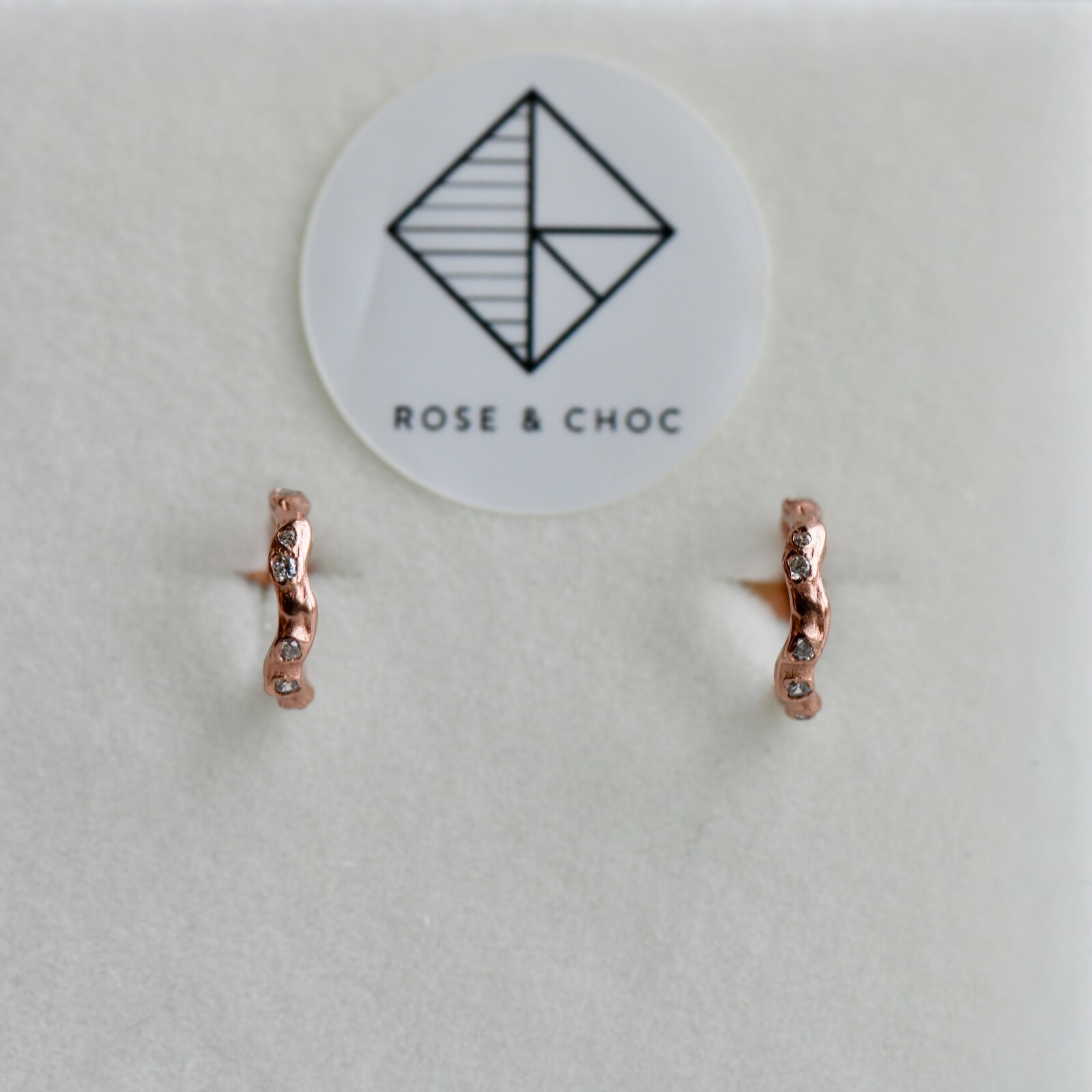 >Irregular hoops with cubic zirconia stones. >Gold plated 925 Sterling Silver fully hallmarked. >Rose gold and yellow gold available. >Sterling silver is an almost pure metal made from 92.5% Silver. >Post closure >Length: 5mm FREE SHIPPING USA- All of our jewelry will arrive in custom packaging ready for gift giving. CARE: To prolong the color and shine of your jewelry, avoid contact with perfume, lotion, and water. Store in a bag or jewelry box. SATISFACTION GUARANTEED All pieces are carefully examined prior to delivery. If item is damaged upon delivery, we will offer full refund. Please first message us regarding your return within 24hrs. Please do send the item back in original packaging. We offer 30 days return policy.
