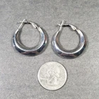 Hoop Earrings Silver Tone Statement Mid Century Modernist Boho 1.25"