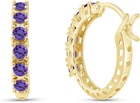 DESCRIPTION Hoop Earrings Simulated Amethyst 14K Yellow Gold Plated Sterling Silver Diamond Specifications: Type: Simulated Amethyst Cut: Round Main Stone Color: Purple Main Stone Creation: Lab Created Earrings Specifications: Metal Type: Sterling Silver Purity: 925 parts per 1000 Fastening: Cilp On SHIPPING We will ship all items within 2-5 business days of purchase during the work week (M-F) excluding holidays. If you order on Friday, your order will be shipped the following business day. Tracking will be provided when it becomes available. Domestic delivery may take up to 1 week. It all depends on the local office. Once the order leaves our location, we have no control Plated delivery times. We will only ship to a Paypal Verified Address. Please make sure your address is current and correct. If the information does not match, your order may be canceled. Buyers are responsible for all customs, duties and taxes for your respective countries. Delivery times for International Shipping will vary. California Buyers Pay 9.0% Tax on all orders.d case auto open by eBay. PAYMENT We only accept payment via PayPal Please sent the payment to us within 8 days after the auction has ended, or you will have unpaid case auto open by eBay. RETURNS Returns are accepted. Item must be returned in unworn and resalable condition. We will only issue a refund for the purchase price, excluding any shipping fees. If we are at fault, we will provide a full refund. Buyer is responsible for all return shipping costs. FEEDBACK Please do not leave a negative feedback as a way to communicate. Any rating given to a seller can neither be changed nor modified. So better communicate for faster resolution to any disputes. If you have any concerns regarding your purchase, please contact us via eBay Message, we assure you that a satisfactory resolution will be reached. Please help us maintain a 5 Star DSR rating in all 4 rating categories, if you feel otherwise, please let us know how we can score a perfect rating from you before you rate us. Thank you for shopping with us!! Have a nice day
