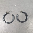 Hoop Earrings Small Gray Gothic Steampunk Mid Century Modernist Bohemian 1"
