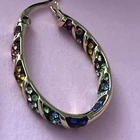 Item Length:1”Material:CrystalMetal:UnknownHandmade:NoColor:GoldClosure:HookMain Stone Color:MulticolorTheme:BeautyShape:OvalBase Metal:UnknownBrand:RainbowCountry of Origin:UnknownVintage:NoMain Stone:CrystalMain Stone Shape:RoundEar Area:AuricleStyle:HoopMetal Purity:UnknownSigned:NoCountry/Region of Manufacture:UnknownAntique:NoMain Stone Creation:SimulatedType:Earrings
