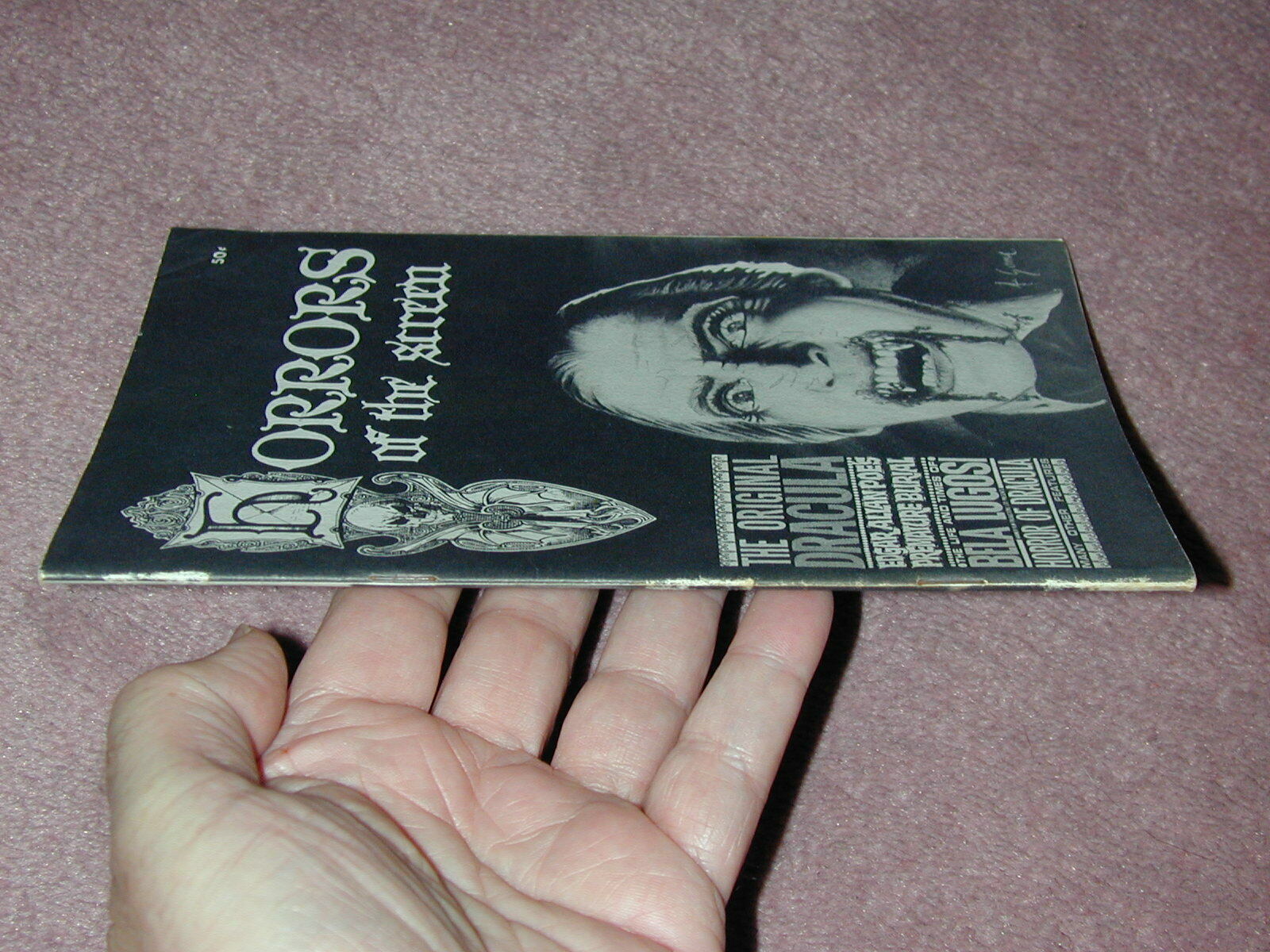 * Multiple auction winning items can be combined and shipped together to save on total shipping. Combined shipping will be quoted after auctions end. This auction is for Horrors of the Screen fanzine # 2 There is a nice letter printed the beginning by Jim Warren, publisher of Famous Monsters (see photo). Also, this fanzine was advertised for sale in the early days of FM. This item is 100% complete; There is nothing cut out or missing. If you have a question about the item in this auction, send me an email and I'll try to answer your question. I may not be able to respond immediately, but certainly before the auction ends. Do not leave your questions for the last few hours, as I may not see them in time. --------------------------------------- SHIPPING: Buyer in USA for shipping this item: * $7.95 for Priority mail, shipped with cardboard backing. I pack securely. Any request for specific packaging will require an additional cost. OUTSIDE USA buyer pays air-mail shipping. Cost based on weight of package and your location outside USA. Typical rates are shown for this item below. Canada $14.25