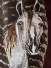 Stunning, one of a kind horse painted on a beautiful pair of wild turkey feathers. Signed and dated on the back by the Artist. Please see all pictures for details and measurements and email with any questions! I am a one woman business and pay close attention to detail, Personalized service is important to me. I list 20 new items each day and love to bundle and will combine shipping. Fast Dependable Shipping!