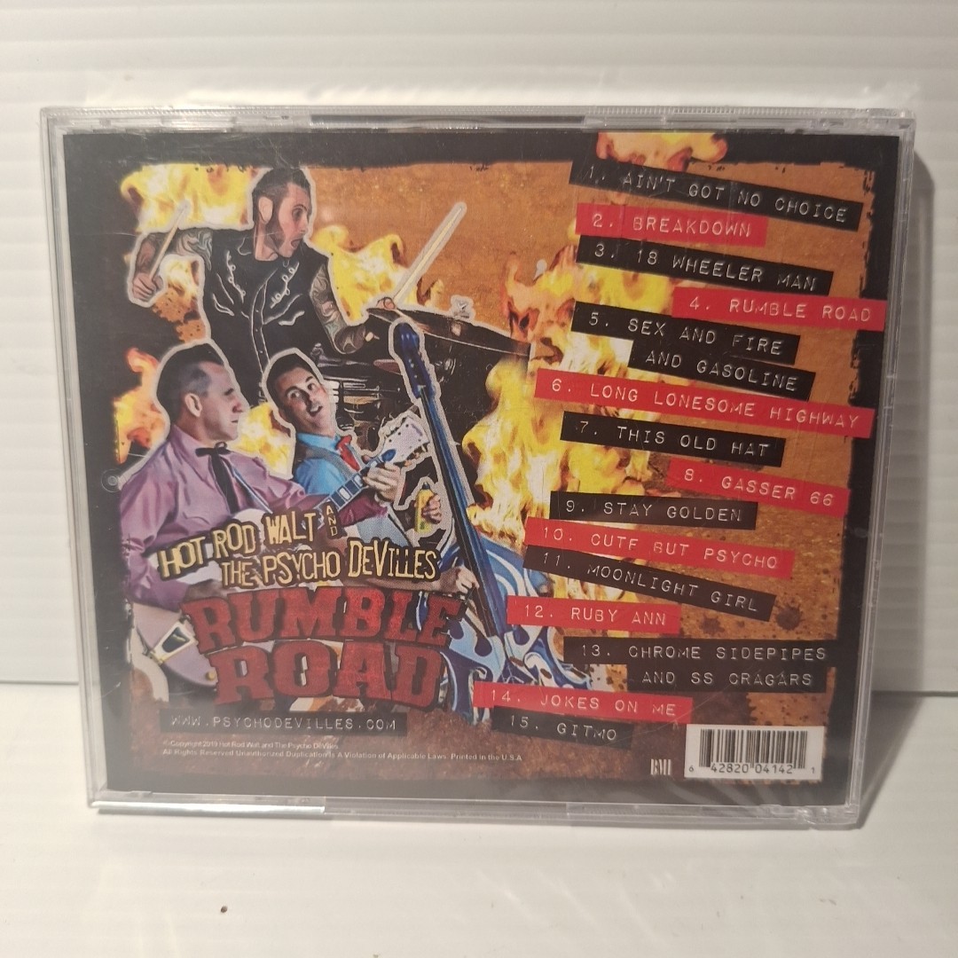 The "Rumble Road" CD by Hot Rod Walt and the Psycho-DeVilles is a mint condition 1st edition album released in 2019. Featuring folk/country rock and rockabilly/psychobilly styles, this English-language album showcases the unique sound of the band. With a standard jewel case, this CD is a must-have for fans of rock music from the United States. *New in wrapper