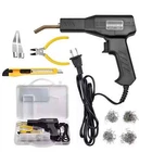 Feature: Strong for shock and twisting after repairing. Stainless steel staple will not rust. Wavy staple design for maximum load. Quick and easy operation. No training required. Learn to use in seconds. Ergonomic designed to fit into the palms of your hand. Staple weld into the plastics quick and easily. The nice way for repairing most modern products which are made of plastics. Specifications: Material: ABS Input Current: 0.5A. Output Voltage: 0-50V Output Current: 0-15A Output Power: 0-50W Overheat Protection. Machine Size: 225 * 155 * 40mm / 8.* * 6.1 * 1.6in. Power Core Plug Cable Length: 1.30m (4.3ft). Weight: 498g / 1.10lb Package size: 285 * 195 * 45mm / 11.2 * 7.7 * 1.8in Package weight: 922g / 2.03lb Packing List: 1 * Plastics Welding Machine 150 * Flat Staple 150 * Outside Corner Staple 150 * Inside Corner Staple 150 * Waves Staple 1 * Plastic Spreader Plate 1 * Carry Box 1 * English Instructions