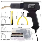 Features Plastic Welder Machine: This handheld plastic welder machine is designed for car bumper repair and plastic welding, making it a must-have for any car enthusiast or mechanic. It is suitable for the repair and reinforcement of automotive plastic parts, such as bumpers, dashboards, lamp holders, radiators, handles, headlights, plastic fins, and motorcycle plastic devices 50W Handheld Hot Stapler Gun: Equipped with a powerful 50W heating element, this handheld hot stapler gun can quickly melt and fuse plastic parts, making repairs a breeze. Plastic Repair Kit: This bumper crack repair kit comes with everything you need to repair plastic parts, including a plier and four types of hot wave flat staples. Easy to Use: With its lightweight and ergonomic design, this plastic welder machine is easy to use, even for those with little to no experience in plastic welding or car bumper repair. Just select the appropriate staples, insert the brass bracket, press the power button, and wait a few seconds for the staples to slowly blend into the plastic part to prevent the staples from passing through the plastic plate. The damaged parts can be repaired and its service life can be extended. Durable and Long-Lasting: Made from high-quality materials, this plastic welder machine is built to last and can withstand frequent use without losing its effectiveness. What's included in the package 1 x Carry Box 1 x Plastics Welding Machine 1 x Cutting knife 1 x Plier 150 x Outside Corner Staple 150 x Inside Corner Staple 150 x Flat Staple 150 x Wave Staple 1 x Instruction
