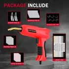 Features: Plastic Welder Machine: This handheld plastic welder machine is designed for car bumper repair and plastic welding, making it a must-have for any car enthusiast or mechanic. It is suitable for the repair and reinforcement of automotive plastic parts, such as bumpers, dashboards, lamp holders, radiators, handles, headlights, plastic fins, and motorcycle plastic devices. Strong for shock and twisting after repairing.Stainless steel staple will not rust.Wavy staple design for maximum load.Quick and easy operation.No training required. Learn to use in seconds.Ergonomic designed to fit into the palms of your hand.Staple weld into the plastics quick and easily.The nice way for repairing most modern products which are made of plastics. Plastic Repair Kit: This bumper crack repair kit comes with everything you need to repair plastic parts, including a plier and four types of hot wave flat staples. Specification: Plug type:US PLUG Line length:1.55M Wattage:200W Voltage:11V Red kit :1274PCS Package Includes: 1x 200W Plastic Welder 200 x Outside Corner Staples 0.6mm 200 x Wave Staples 0.8mm 200 x Wave Staples 0.6mm 200 x Inside Corner Staples 0.8mm 200x Flat Staples 0.6mm 200 x Flat Staples 0.8mm 56 x Plastic Rods 5 x Stainless Steel Mesh 5 x aluminum foil paper 3 x Sponge 1 x Plier 1 x Knife 2 x Iron Smoothing Tip 1 x Box Blue kit: 227PCS Package Includes: 1x 200W Plastic Welder 50 x Flat Staples 50 x Wave Staples 50 x Outside Corner Staples 50 x Inside Corner Staples 10 x Plastic Rods 20cm 5 x Stainless Steel Mesh 5 x aluminum foil paper 3 x Sponge 1 x Plier 1 x Knife 1 x Iron Smoothing Tip 1 x Box