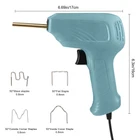 Hot rivet plastic welding machine Hot gun plastic welding machine Bumper welding bolt Rivet bumper repair tool kit Features: 1. Humanized design: traditional handle, more convenient to use. It handles details well and repairs more accurately. 2. Pure copper welded pipe, anti burn handle, light and compact, fast heating, no burn, firm welding, fast heating in 3 seconds 3. Functions: plastic welding, planting nails, crack welding, thermal cutting, welding fiber welding 4. The binding is not fixed, the smooth insertion is safer, the single hand operation is fast, saving time and energy, and improving efficiency. 5. Repair at least 99% of the plastic on the market. It is very suitable for maintenance: bumper, dashboard, lamp holder, plastic ring, radiator, spoiler, handle, headlight, plastic wing, plastic device of automobile and motorcycle, etc. Specifications: Input voltage: British, Australian, European (220V)/American plug (110V) Color: cyan Power input: 0.5A Output power: 0-50W Output voltage: 0-5V Output current: 0-30A Weight: 450G Package size: 18 * 18 * 5CM Packing list: Welding gun * 1 Welding nail * 200 Instructions * 1