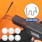 Item D escription This product is suitable for repairing and reinforcing the plastic parts of all cars. Such as bumpers, dashboards, lamp holders, plastic rings, radiators, and plastic devices for cars and motorcycles. Featur es : This welding repair tool kit is designed to repair plastic parts of the car. Restore your broken parts, prolong its service life. Various types of nails to meet your different needs. Easy to operate, and convenient to use. Wide application, suitable for repairing bumper, dashboard, lamp holder, plastic ring, radiator, car and motorcycle plastic device. The rubber handle has a comfortable grip and will not feel tired for a long time holding. Specifi cation : Plug: US Plug Voltage: 110V Output voltage: 0-50V Power Source: Corded Electric Power: 0-50W Input current: 0.5A Output current: 0-15A Material: Soldering Gun (Plastic & Metal); Staples (Stainless Steel) Color: Black Cable Length: 1.5m Package Size: 225 * 155 * 40mm / 8.9 * 6.1 * 1.6in. Advanta ge Instruction: Function 1: Plastic welding (free of nails)filler welding, hole repair, and eliminate gaps. Function 2: Planting nails With various repair nails, it can repair horizontal, vertical, long and short crack. Function 3: Hot smoothing Plastic heating is smoothed, welded, doubled in strength, and beautifully added. Function 4: Thermal cutting It can be used for hot cutting of plastic rope, flat cutting and automatic sealing. Function 5: Tin Welding Heat/cooling is faster, more efficient and more energy efficient than general welding machines. Packa ge List: 1 x Repair Gun 100 x 0.6 mm Flat staples 100 x 0.8 mm Flat staples 100 x 0.6 mm Wave staples 100 x 0.8 mm Wave staples 100 x 0.8 mm Corner staples 100 x 0.6 mm Outside corner staples 1 x Cutter 1 x Pliers 1 x User Manual