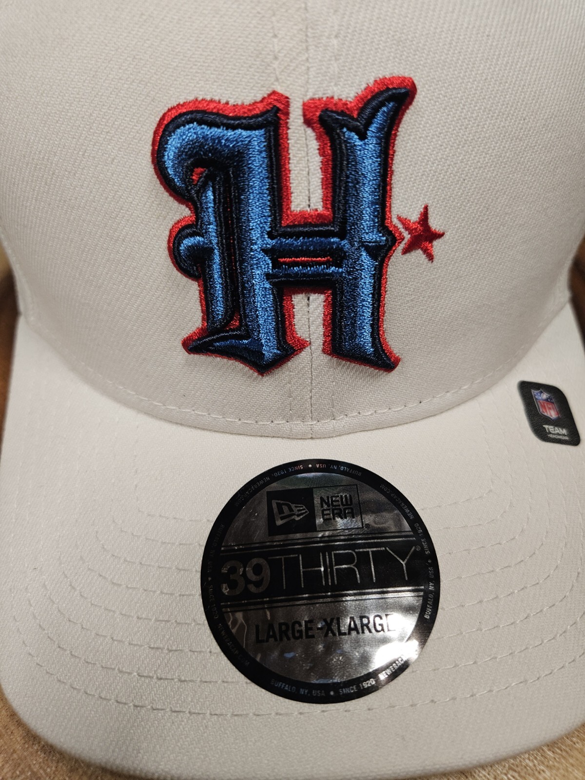 Crafted for the ultimate fan, the Houston Texans New Era 39Thirty Stretchfit Hat is your go-to accessory for game days and beyond. With its solid white color accented by the bold Texans logo, this baseball cap makes a statement while celebrating your team. The stretch fabric ensures a comfortable fit for sizes L/XL, making it a versatile addition to any Texan's wardrobe. Whether you're headed to the office or gearing up for a night out, this cap's diverse functionality shines through. It's suitable for various occasions, from casual wear to party cocktails, and even travel. With its New Era branding, this hat merges streetwear appeal with NFL pride, making it an essential piece for those who bleed H Town's sports spirit.