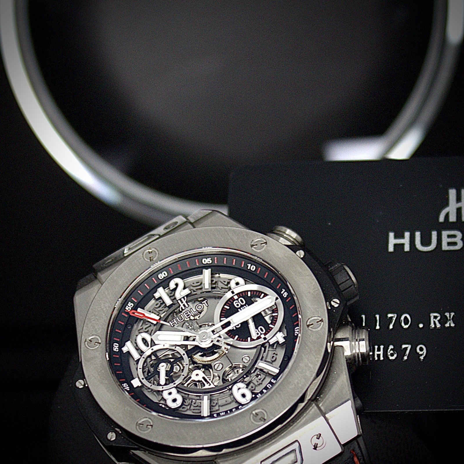 Up for sale is a bold and modern Hublot Big Bang Unico , reference 411.NX.1170.RX , in very good pre-owned condition . This watch features a 44mm titanium case , a striking skeletonized dial , and a comfortable black rubber strap with a deployant clasp. Powered by the Hublot HUB1242 UNICO automatic flyback chronograph movement , this piece blends avant-garde design with impressive technical performance. A perfect statement watch that showcases both craftsmanship and presence. Includes box and papers . Note: We photograph our watches using a strong macro lens to show full detail. Any visible dust or particles in the images should not be mistaken for scratches or damage. What's Included: ✔️ Hublot Big Bang Unico 411.NX.1170.RX Watch ✔️ Box and Papers Key Features: Reference: 411.NX.1170.RX Case Size: 44mm Case Material: Titanium Dial: Skeleton Movement: Automatic (HUB1242 UNICO Chronograph, Flyback Function) Strap: Black Rubber Crystal: Sapphire Water Resistance: 100m Why Buy from Us? ✅ 100% Positive Feedback — Buy with confidence from a trusted seller ✅ Authenticity Guaranteed — All watches are verified and guaranteed authentic ✅ Fast & Secure Shipping — Fully insured and carefully packaged ✅ Excellent Customer Service — Responsive support before and after your purchase ✅ 30-Day Returns — Hassle-free returns with full money back if not satisfied