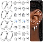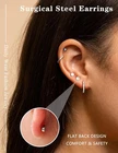 Hypoallergenic Surgical Steel Flat Back Earrings for Women and Men - Silver Stud Hoop