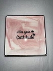 “I like your Cattitude” Trinket Dish 4’1/4 X4’1/4 Pink Swirls & White. Condition is Used. Shipped with USPS Ground Advantage.