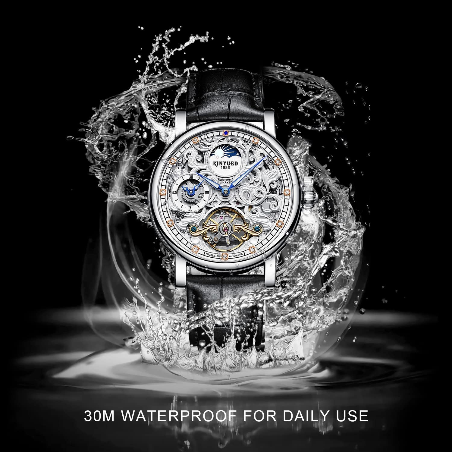 IK COLOURING Mens Mechanical Watches, Luxury Automatic Skeleton Tourbillon Watch Waterproof Crystal Self-Winding Wrist Watch for Men Product Details Color: black leather Brand: IK COLOURING MPN: IK COLOURING Mechanical Watches UPC: Does not apply EAN: Does not apply Package Dimensions : 6.22 x 2.8 x 1.34 inches; 4.16 ounces Item model number : IK COLOURING Mechanical Watches Department : mens Date First Available : June 23, 2022 Brand, Seller, or Collection Name: IK COLOURING Clasp: Hidden Clasp Model number: IK COLOURING Mechanical Watches