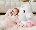 Whether you're looking for a birthday gift, a Christmas present, or just something special to show someone you care, this giant unicorn stuffed animal is a nice choice. With its charming design, it's sure to bring a smile to anyone's face. Meet the giant unicorn stuffed animal, a massive plush toy designed for endless cuddles and adventures. This jumbo-sized buddy measures a whopping 43" and is sure to impress kids, girls, and boys alike! Made with soft and plush materials, this huggable big plush unicorn is simply irresistible to touch. Its fluffy and velvety surface will make you want to snuggle up with it all day long, providing excellent comfort and companionship. We take pride in the premium quality of our large plush toy. Carefully crafted with attention to detail, this oversized toy is built to last. The durable stitching ensures that it will withstand all the love and playtime it receives. Looking for a wonderful gift? Look no further! Our huge stuffed unicorn is a wonderful gift option for birthdays, holidays, or any special occasion. It's not just a toy; it's a lifelong friend that will bring joy and smiles to anyone's face. Your satisfaction is our priority. If you have any issues or concerns, don't hesitate to reach out to us. We stand behind our product and offer excellent customer service, ensuring that you have a hassle-free experience. Order now and unleash the fun with this magnificent giant plush toy!