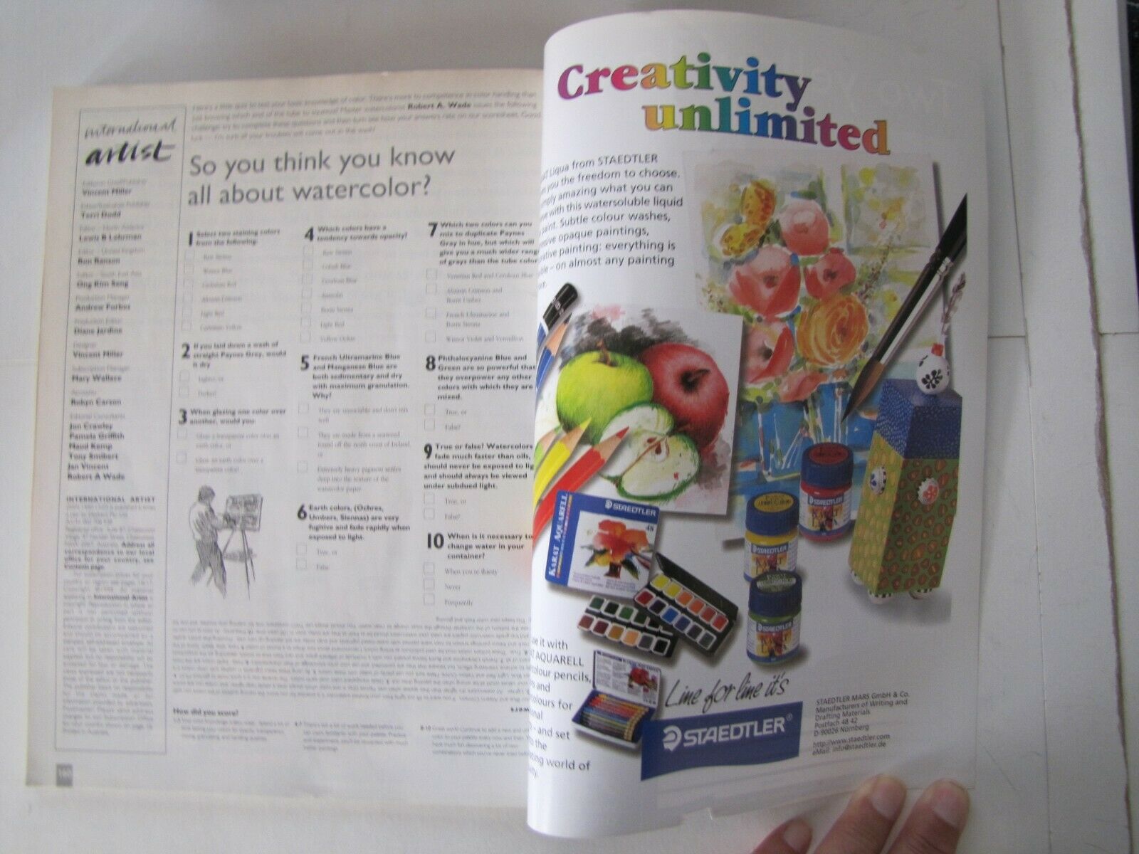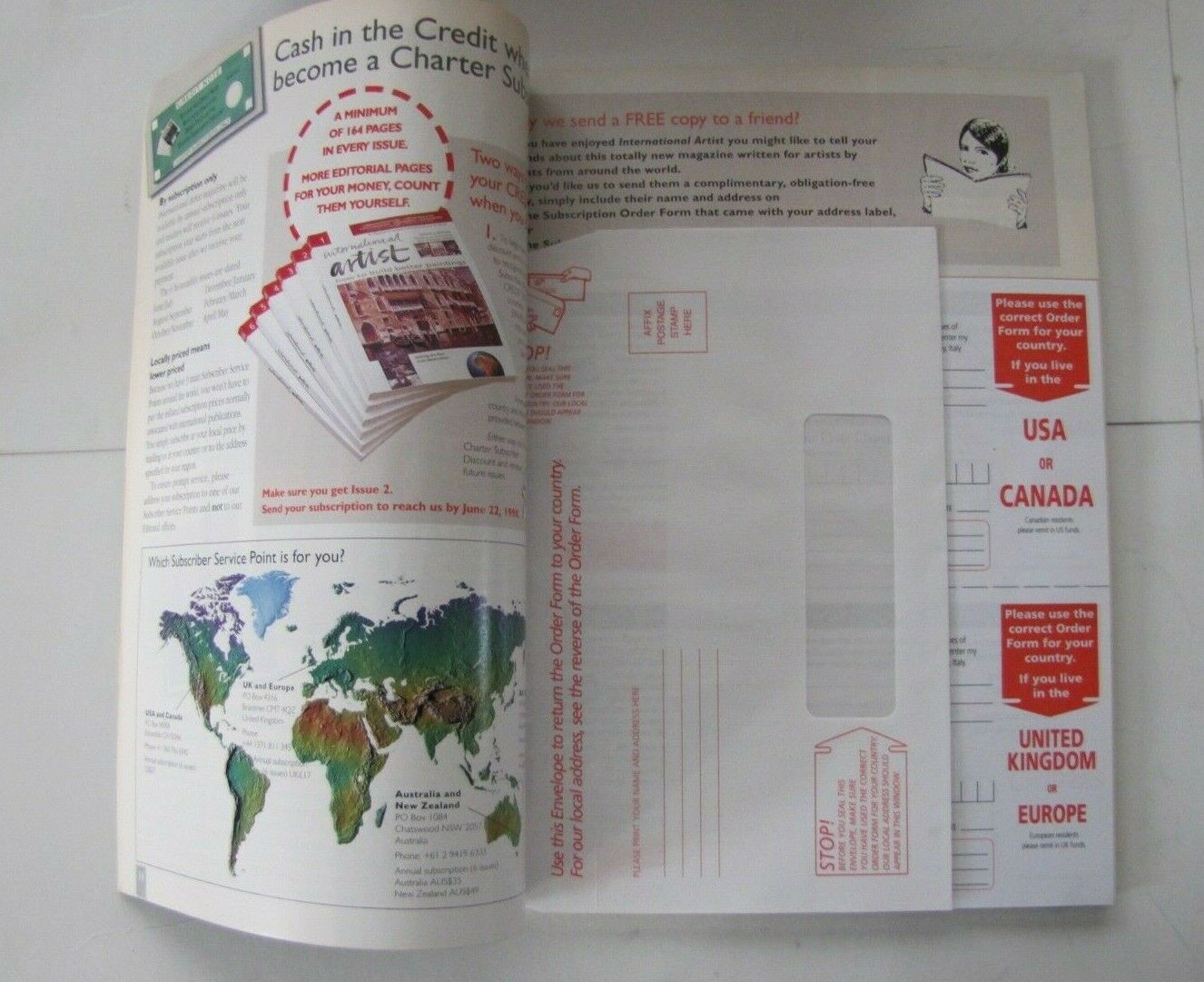 Up for auction is the art magazine "International Artist" June/July 1998 160 pages. I'd call it brand new because I've had it since 1998 and never read it. It came in the mail in the same condition as I have it now including the tiny nick on the bottom back cover. It features the best of the best artist's from around the world in all media. I subscribed to the magazine but didn't think it would make it because it was so much more expensive than other art magazines of the time and I just stored it away from any light, moisture and dust. So I'll call its condition like new but it really is brand new since it was never used in any way. Great collectors magazine since it's going to be around for a long time to come. It also includes the original subscription page and envelope. Payment is due within seven days of auction close. Thank for looking.