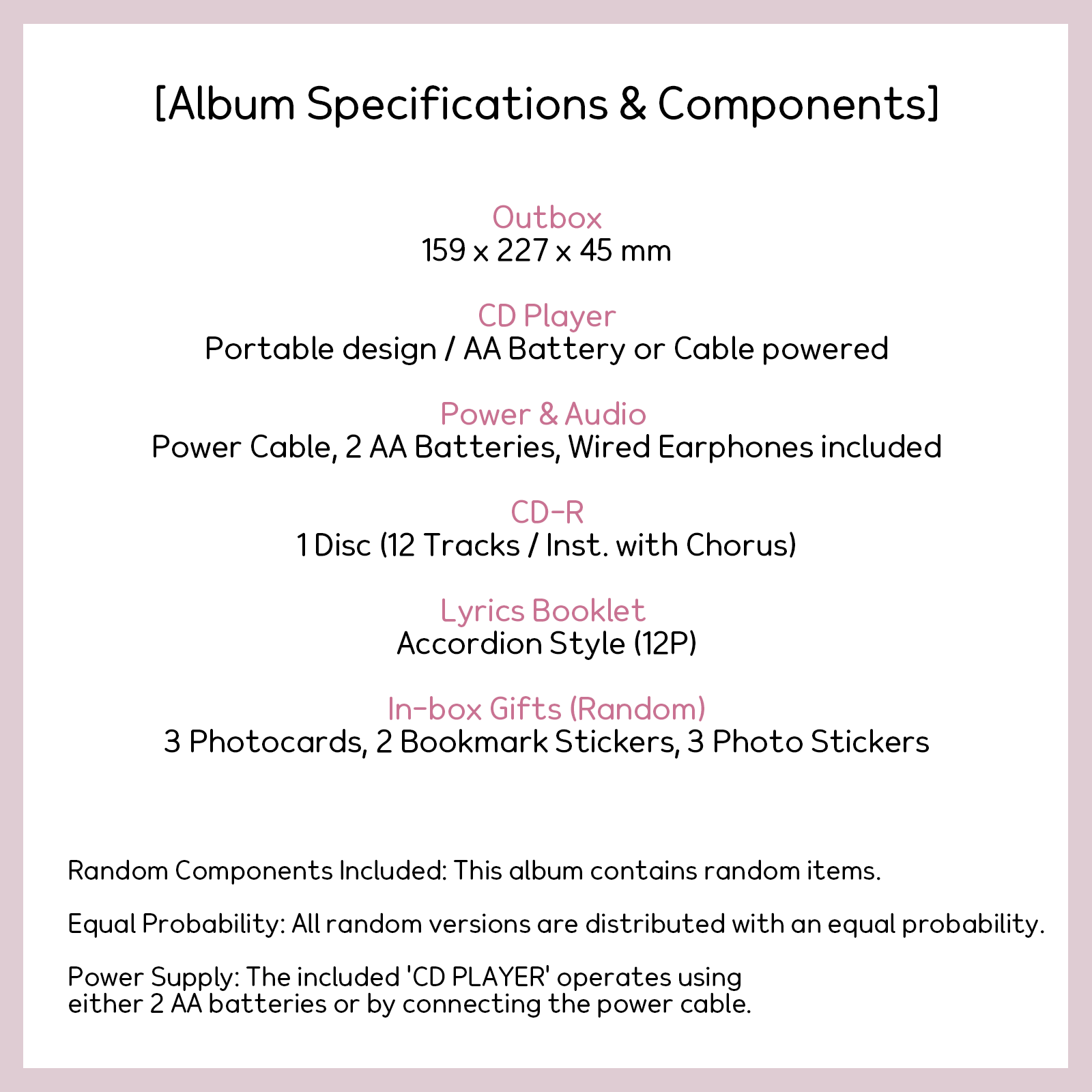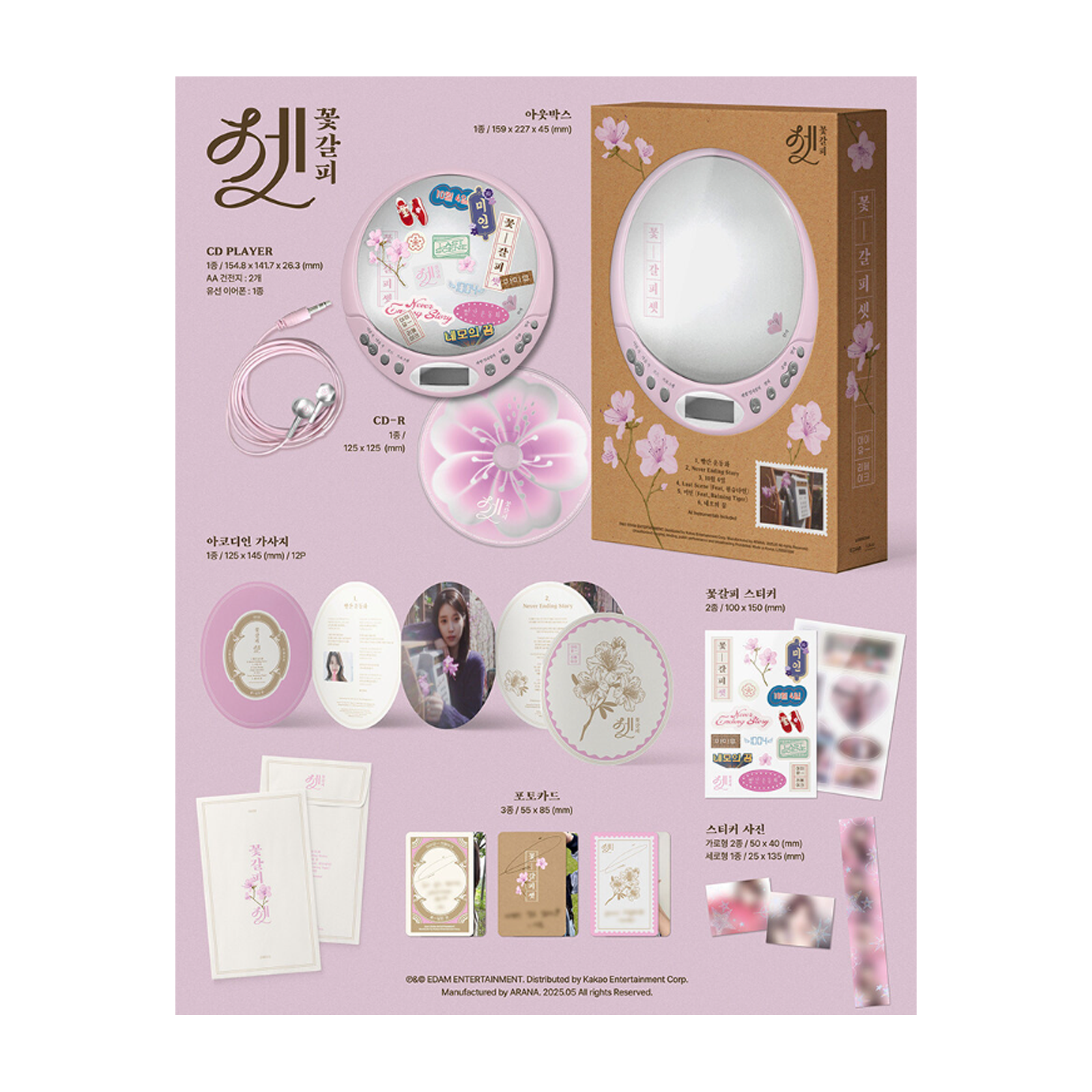 IU KKOT-GALPI 3 EP Album CDP Version Limited Set CD+Player+Earphone Photo Card 🏅 100% Authentic: Genuine products from South Korea. 🛡️ Safe Packaging: Carefully packed for safe arrival. 💬 Fast Communication: Quick response & valid tracking. 💿 Tracklist Interpretation Red Shoes (빨간 운동화): A whimsical, upbeat jazzy track. Never Ending Story (Title): A grand and emotional signature ballad. October 4th (10월 4일): A warm, nostalgic acoustic folk song. Last Scene (feat. Wonstein): A trendy R&B track with smooth vocal harmony. Beauty (feat. Balming Tiger): An experimental, groovy modern remake. Square's Dream (네모의 꿈): A playful, vintage pop song with a charming vibe. ⚠️ Important Safety Instructions Power Supply: Please check the voltage compatibility before use and use only the provided or standard power cables. Handling: Avoid physical impacts, water, heat, and high pressure to prevent damage. Environment: Do not store in high temperature or humidity. (Optimal range: 5 to 35 degrees Celsius) Emergency: If you notice smoke, strange odors, or overheating, stop use immediately and disconnect the power. Usage: Never touch the power cable with wet hands and do not disassemble or modify the device. Water Damage: If the device gets wet, do not use a hairdryer or microwave to dry it. Please contact a professional for repair. 📦 Shipping All items are shipped from South Korea. Please check the “Shipping and Payments” tab for available options. Economy Shipping (Free) : No tracking. Delivery takes 4–8 weeks. Standard Shipping : Tracking number provided. Usually takes 2–4 weeks. Expedited Shipping (FedEx, DHL, EMS) : Tracking number provided. Delivery within 3–7 business days. ⚠️ Important Delivery Notes: • Actual delivery times may vary due to holidays or strict customs inspections. • US and global customs processing has become slower recently. Please allow extra time for clearance. • For Brazilian buyers: Tax ID (CPF) is required to avoid shipping delays. ⚖️ Customs & Import Duties (VERY IMPORTANT) Buyers are responsible for all customs duties, taxes, and fees charged by their country. ✳️ Special Note for U.S. Buyers: Due to recent changes in US Customs regulations (2025-2026), stricter rules apply to "Country of Origin." Even if the item is shipped from South Korea, if the product was originally manufactured in China , it may be subject to US tariffs regardless of the order value. Please check your local customs laws regarding "Country of Origin" tariffs before purchasing. ✴️ General Policy: Import duties and taxes are not included in the item price or shipping cost. We cannot undervalue orders or mark items as a “gift” as this violates international laws. 🔄 Return Policy Returns are accepted within 30 days of receipt. Items must be in original condition (unopened/sealed) to qualify for a full refund. Buyer is responsible for return shipping costs. 📩 Customer Support If you have any issues with your purchase, please contact us first before leaving feedback. We are here to help and will resolve any problem ASAP! Thank you. 😊