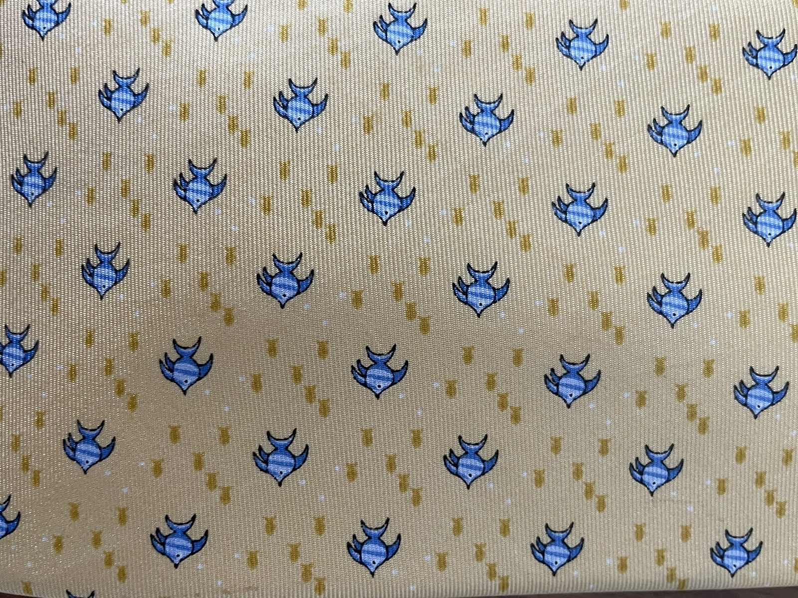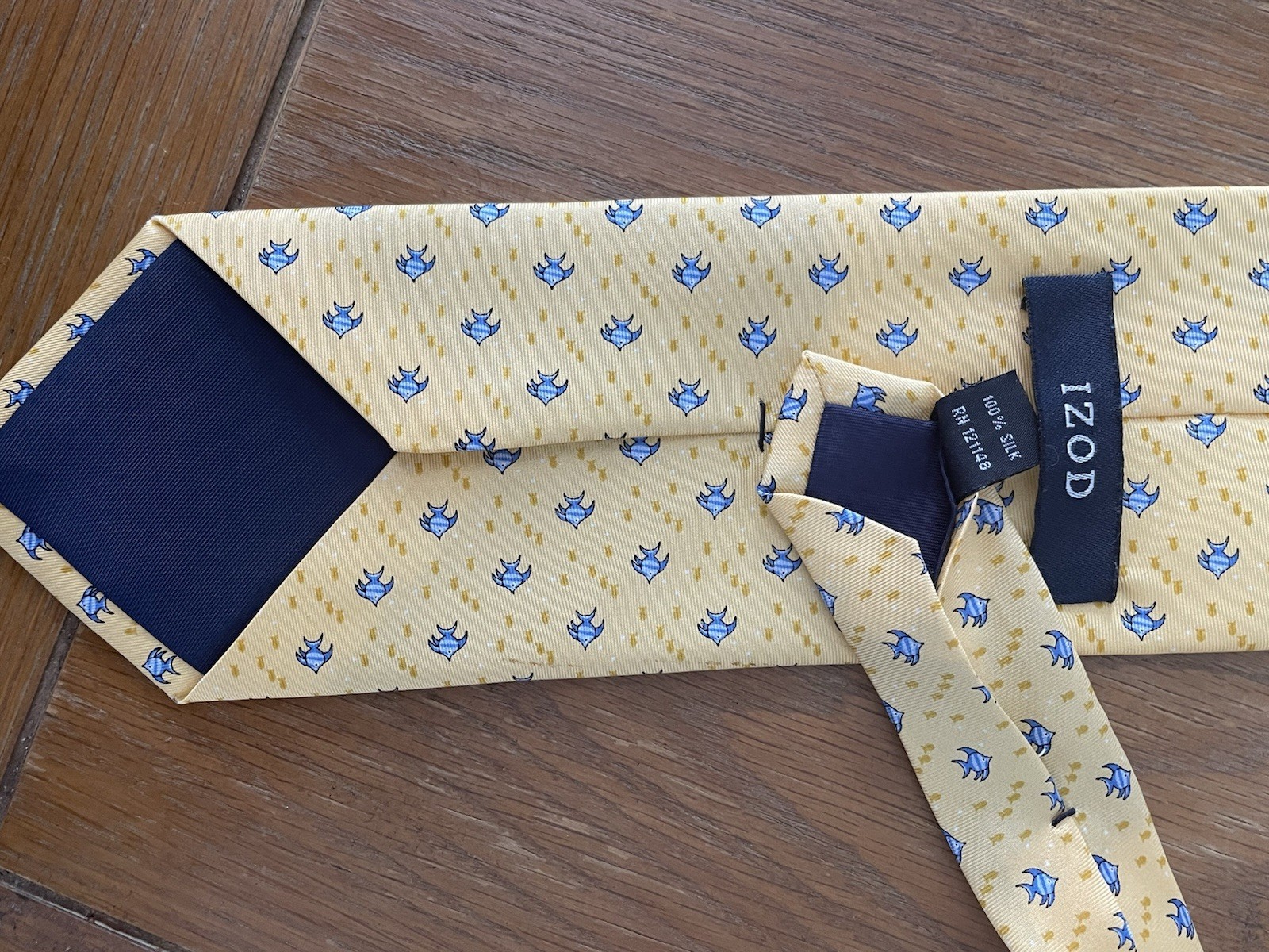 IZOD YELLOW BLUE SMALL FISH PRINT SILK NECKTIE TIE