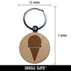 Ice Cream Cone Silhouette Engraved Wood Round Keychain Tag Charm