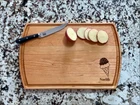 Design: Personalized Ice Cream Cutting Board or Charcuterie Serving Tray All items ship via USPS - please make sure your address is correct :-) Whether used as a charcuterie serving tray for snacks or cutting board, our bamboo, walnut and cherry custom boards are the perfect addition for the home and make the perfect gift for your loved one celebrating a birthday, anniversary, new home, wedding, etc! *** FEATURES *** • SIZES: We have multiple styles and sizes available. To see our current sizes available, click the drop-down menu. The photo slide contains a photo showing each side by side. Please note, the board with the juice groove only has the groove on the front side of the board. • THICKNESS: Bamboo Boards - Approximately 1/2" Thick; Walnut & Cherry Boards - Approximately 3/4” Thick • UNIQUE: Every board is unique with the grain and coloring varying throughout - no board is the same! • CARE INSTRUCTIONS: Hand wash only with warm water. Do not soak. Please apply mineral oil throughout the board’s life. • PERSONALIZATION/CUSTIMIZATION: Do you want the text placed differently on the board? Please don’t hesitate to contact us. All personalization notes can be entered in the personalization box when checking out. • SHIPPING: All cutting boards ship within 2 to 5 business days. • WHOLESALE ORDERS: Please don’t hesitate to contact us for information about wholesale orders. Processing times for larger orders may change. • NOTE: Colors can vary a bit on different monitors and screens. Any props included in photos are not included. Please be sure to double-check your address to make sure it is accurate for USPS delivery. If a package is returned to us due to an invalid address, the buyer is responsible for all additional shipping charges. We appreciate you supporting small business – best wishes! For items ordered with simple edits, we do not send proofs since the layout doesn't change from the example(s). However, in the event there are requests that change the layout from the example(s), we do send proofs for approval before making the product. If you'd like a proof before we make the product, please note so in the personalization box.