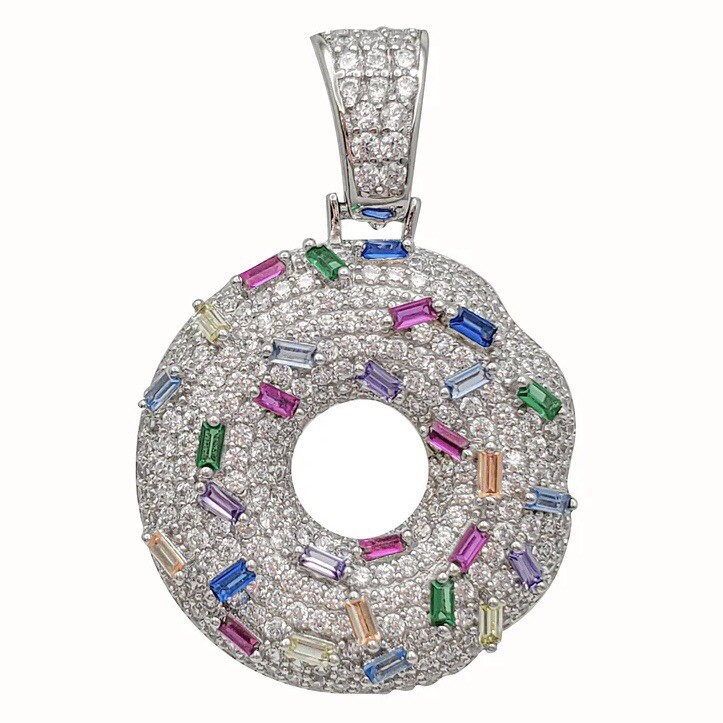 Iced-Out Silver Sprinkled Donut Pendant Necklace